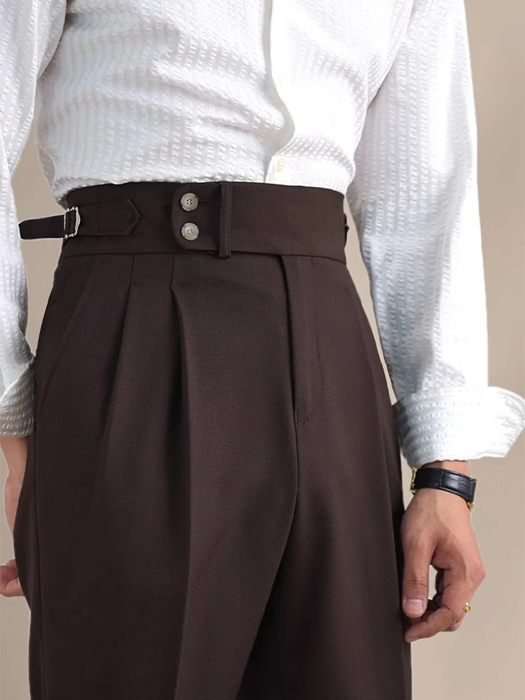 Aidase Naples Double Fold High Waist Linen Suit Pants For Men Summer Breathable Straight Leg Office Trousers Men Pantalon Costume Homme
