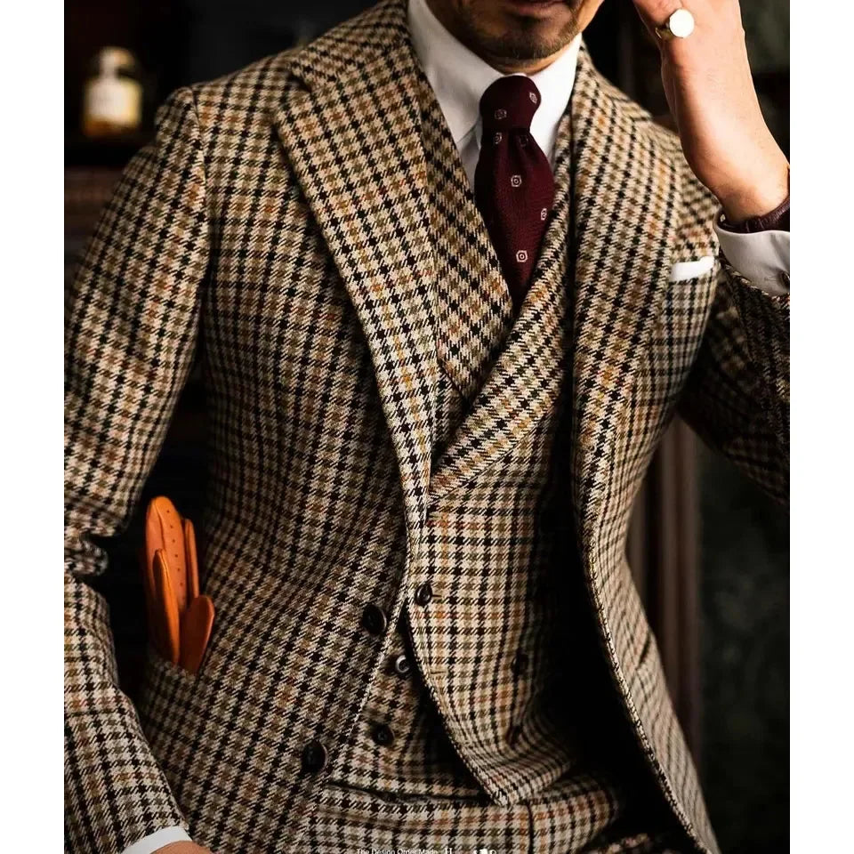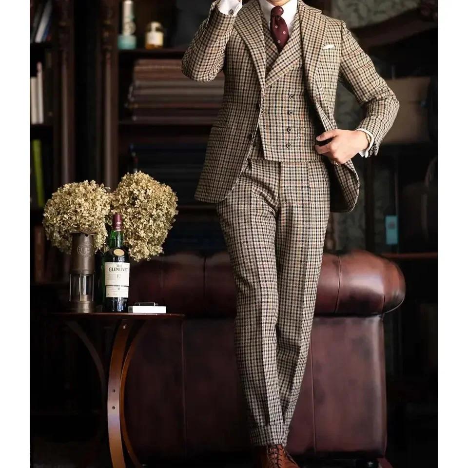 Aidase mens outfits Notch Lapel Single Breasted Formal 3 Piece Jacket Pants Vest Regular Length Flat Englan Style Luxury Preppy Style Male Clothing