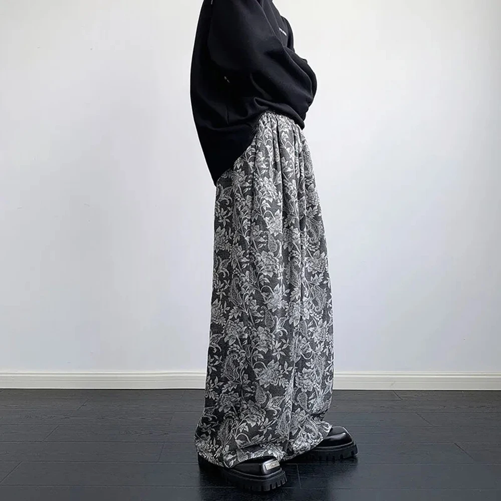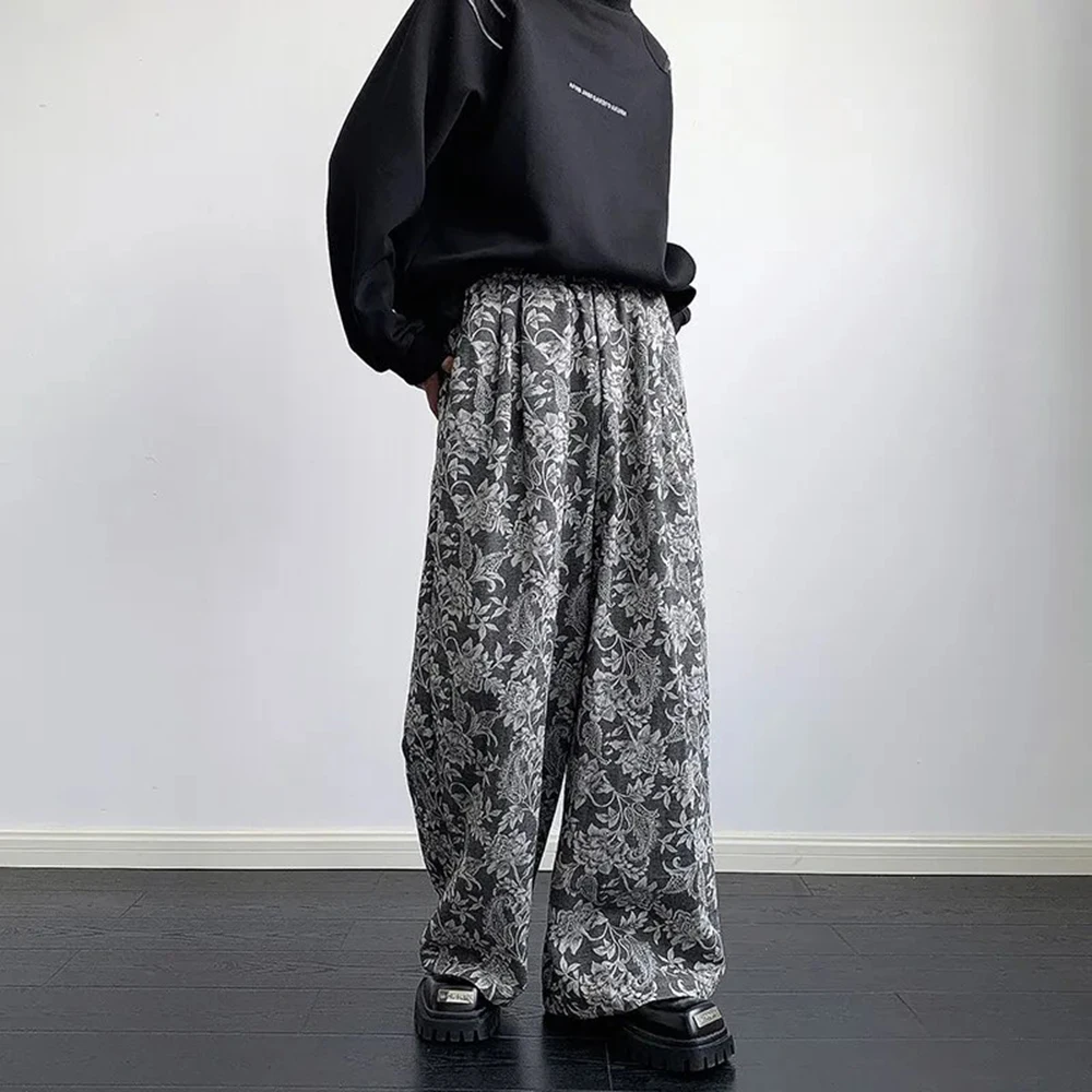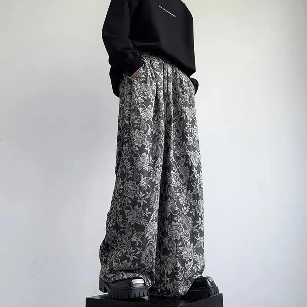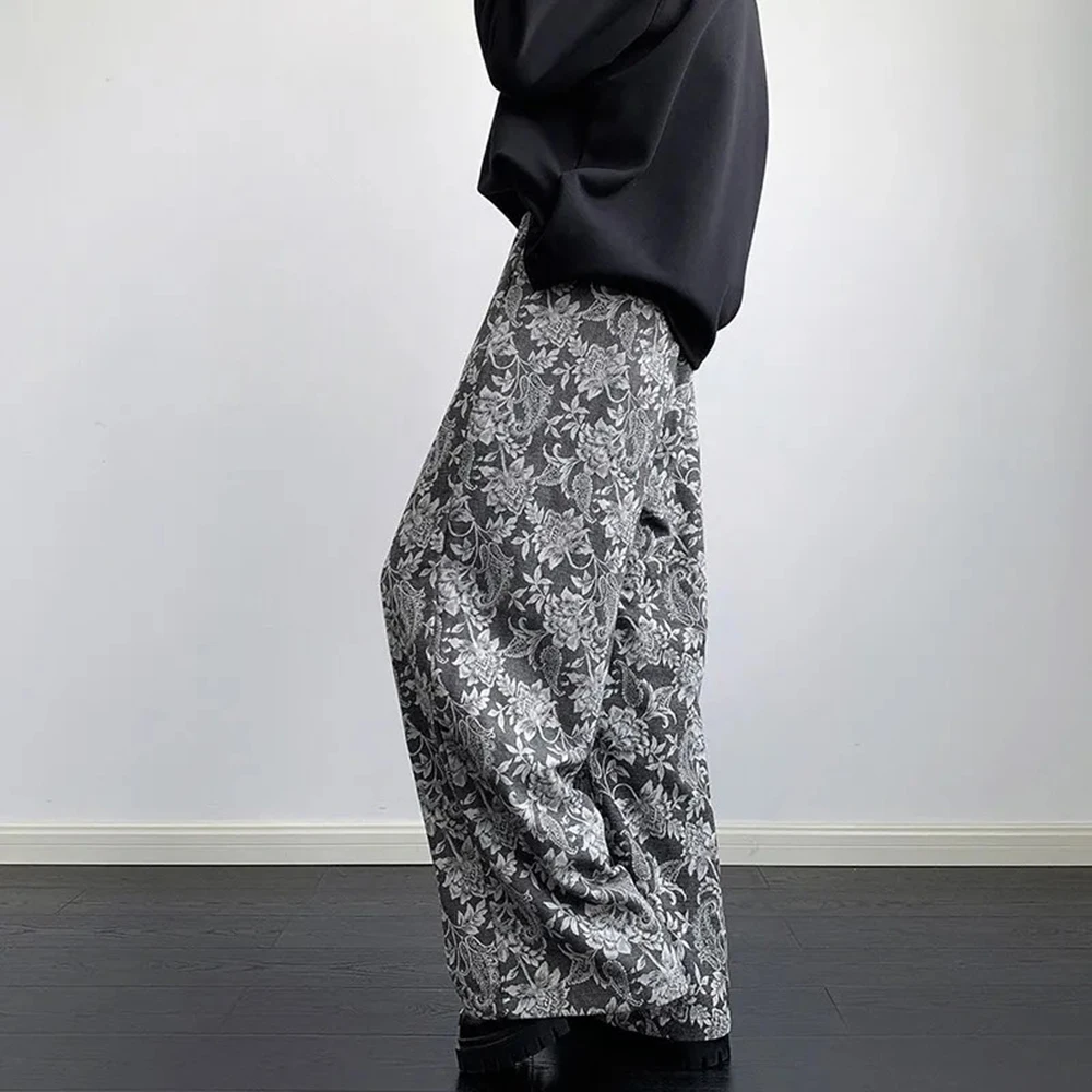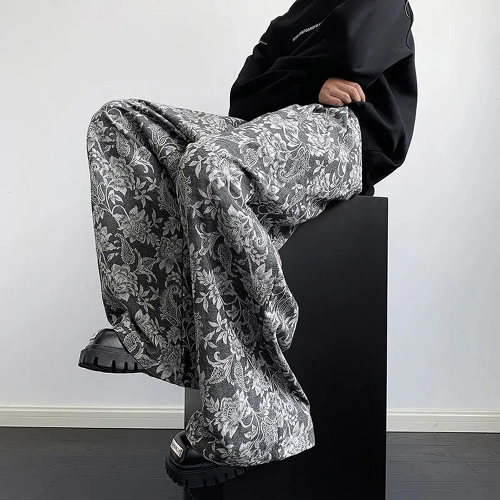 Aidase Retro Cashew Flower Print Fashion Drape Wide-Leg Pants Unisex 2025 Spring Summer Fashion Niche Design Luxury Mopping Pants Men