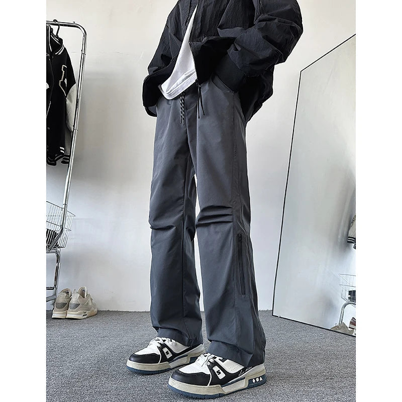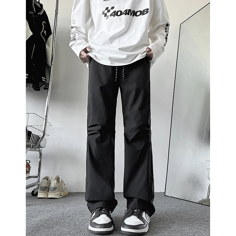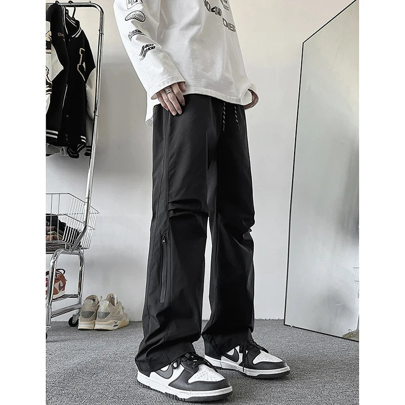 AIDASE - Spring Autumn Couple Storm Pants Windproof Waterproof Fold Shaped Straight Tube Loose High Handsome Urban Outdoor Storm Pants