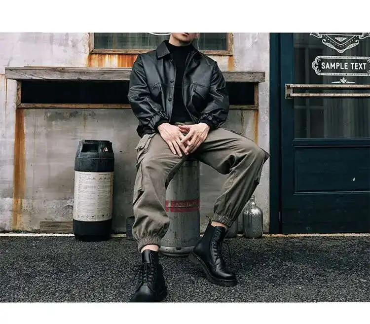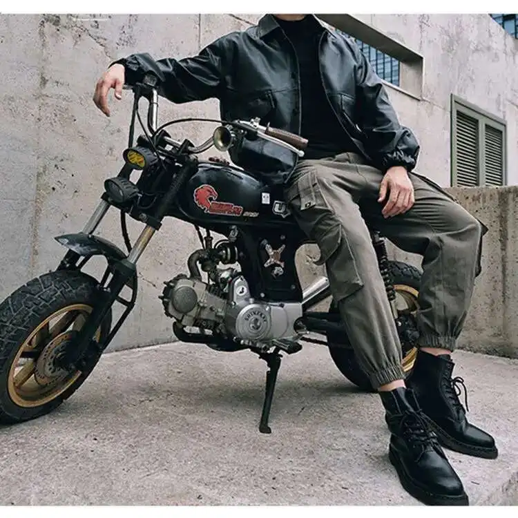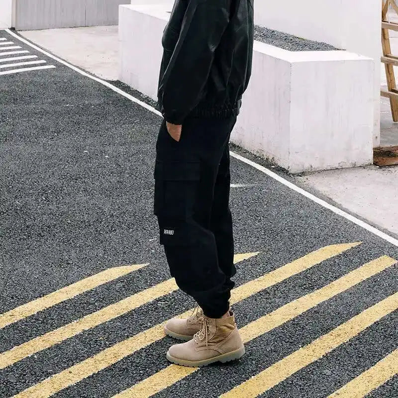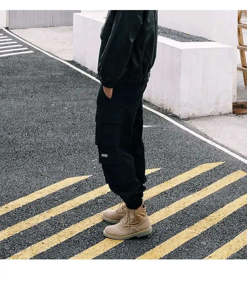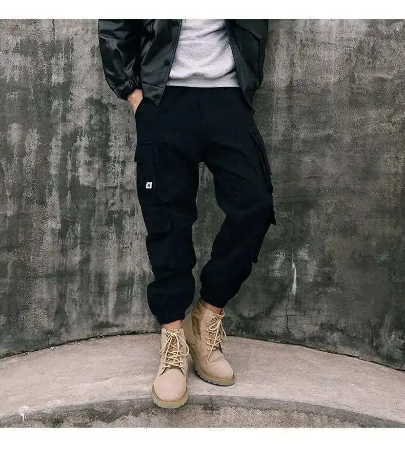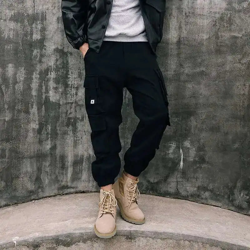 AIDASE - Spring Autumn New Safari Style Cargo Pants Men's Tide Dark Punk Slim Ankle Binding Korean Version Tactical Fashion