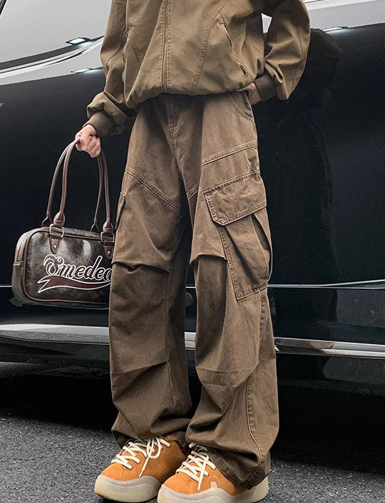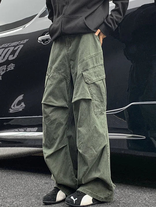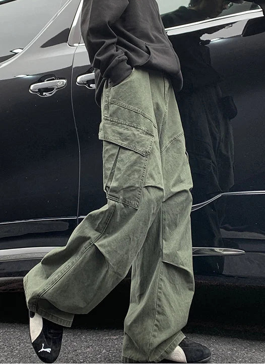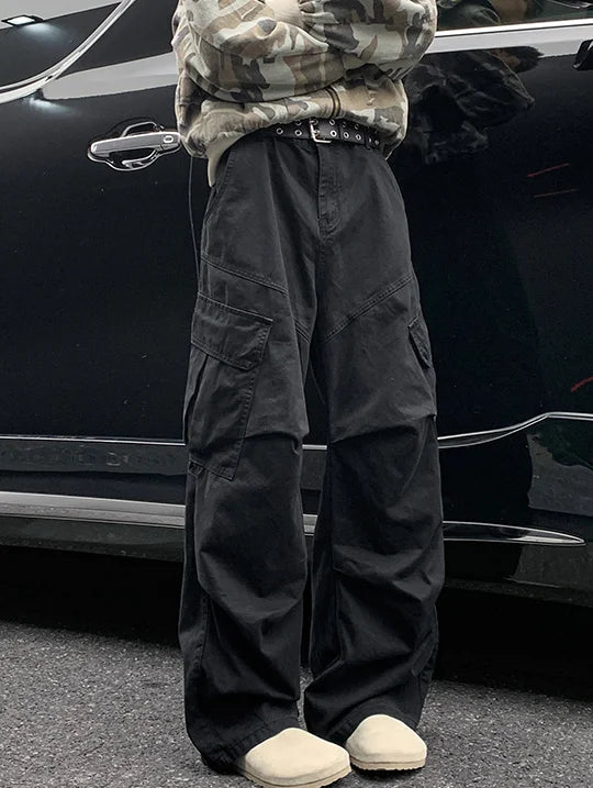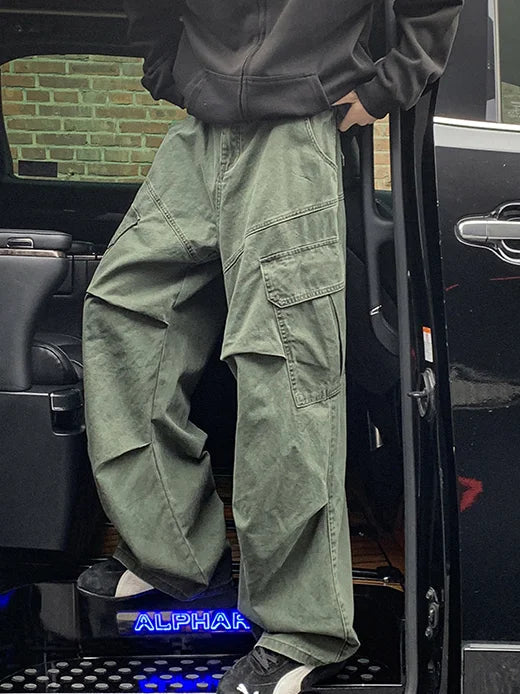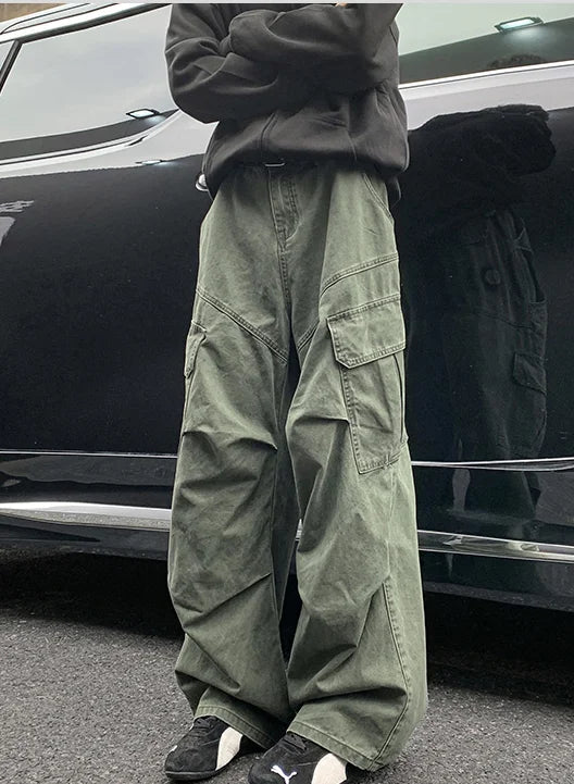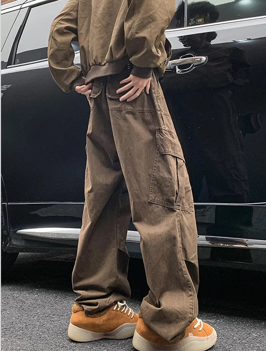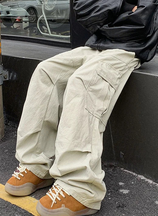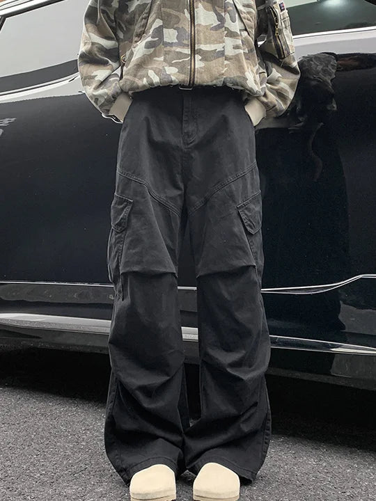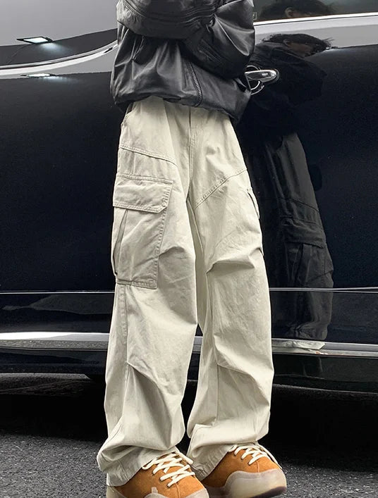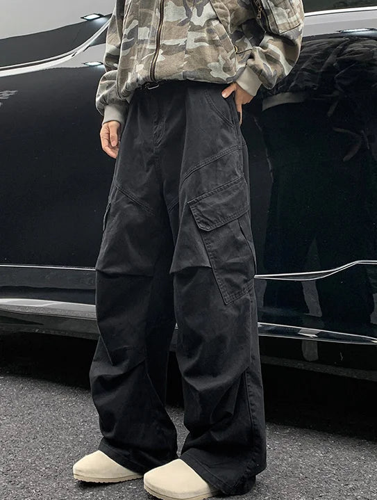 AIDASE - Spring Big Pocket Men's Cargo Pants Japanese Y2k Harajuku Loose Straight Wide Leg Trousers Baggy Pants Man Hip Hop Sweatpants