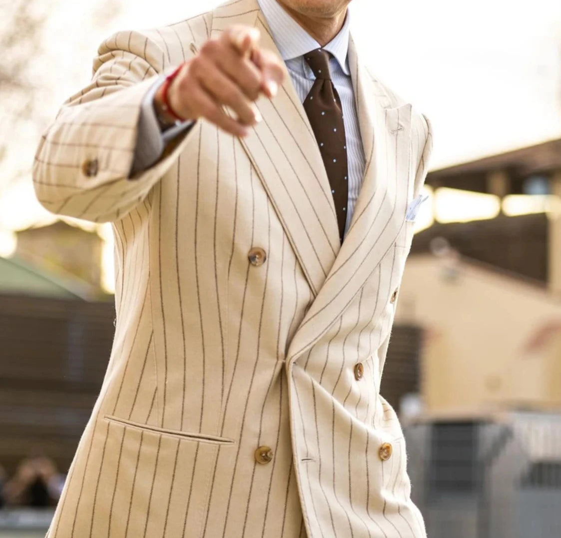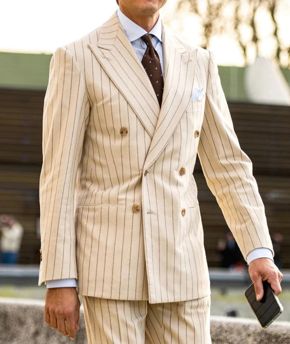 Aidase Striped Wedding Suits For Men Peak Lapel Groom Wear Slim Fit Double Breasted Tuxedos Business Custom Made 2 Pcs Jacket Pants