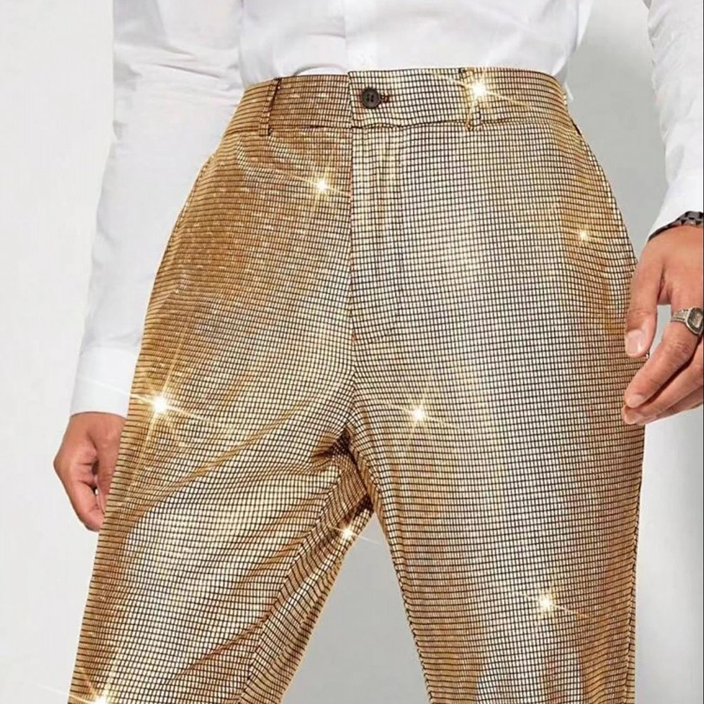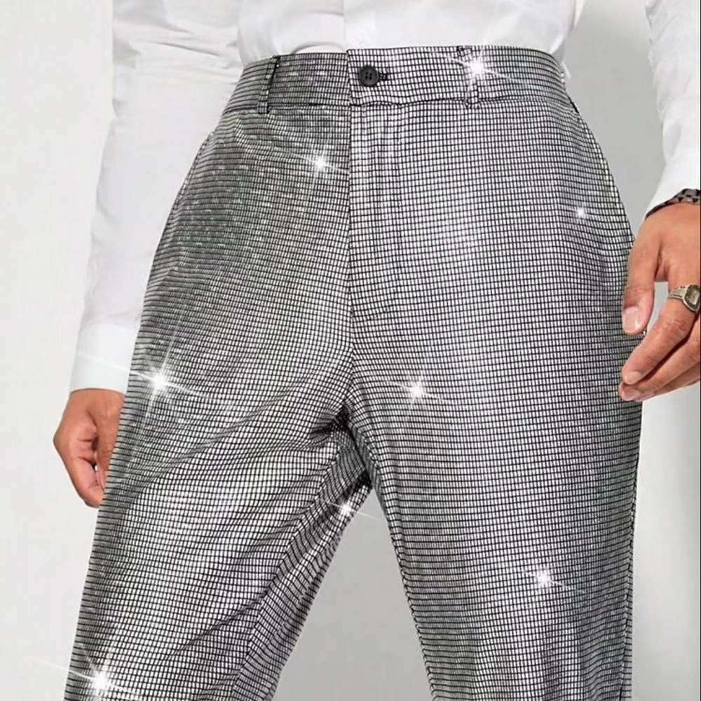 AIDASE - Summer New Men's Sequin Plaid Solid Color Trousers Retro Fashion Trend Party Performance Loose Casual Niche Men's Bottoms