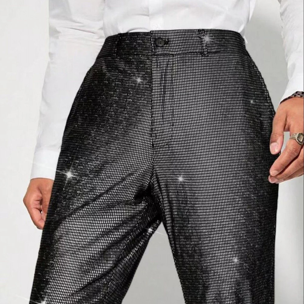 AIDASE  -  Summer New Men's Sequin Plaid Solid Color Trousers Retro Fashion Trend Party Performance Loose Casual Niche Men's Bottoms