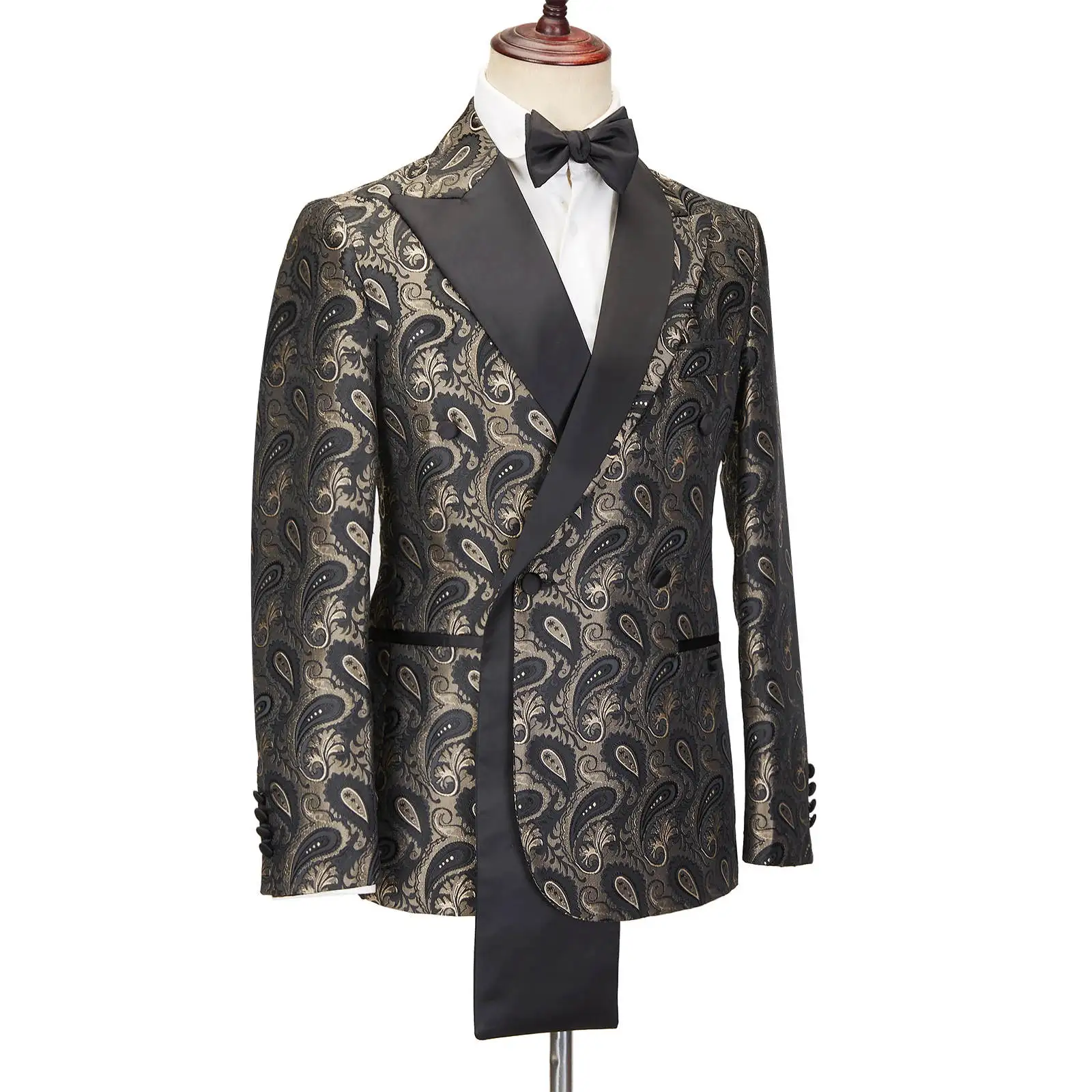 AIDASE - Tailor Made Men Wedding Tuxedos Double Breasted Floral Pattern Pants Suit Prom Wedding Party Costume 2 Pieces