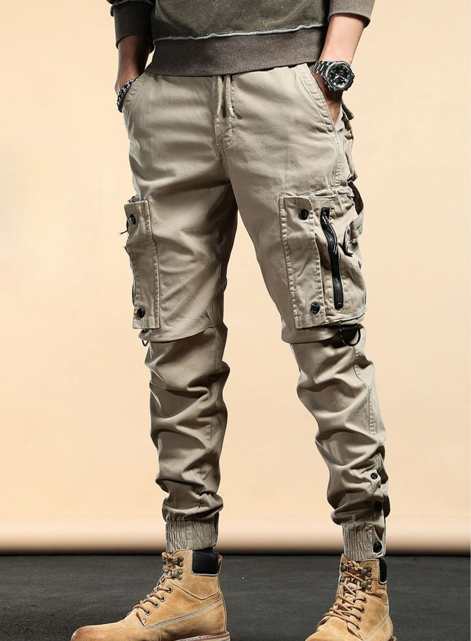 Aidase mens outfits Trousers Man Motorcycle Slim Khaki Cargo Pants For Men Biker Autumn Loose Big Size Large Street Luxury Designer Oversize Emo