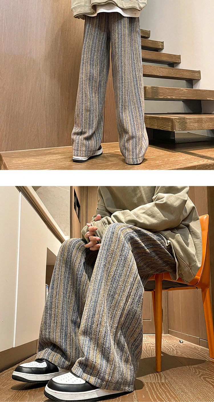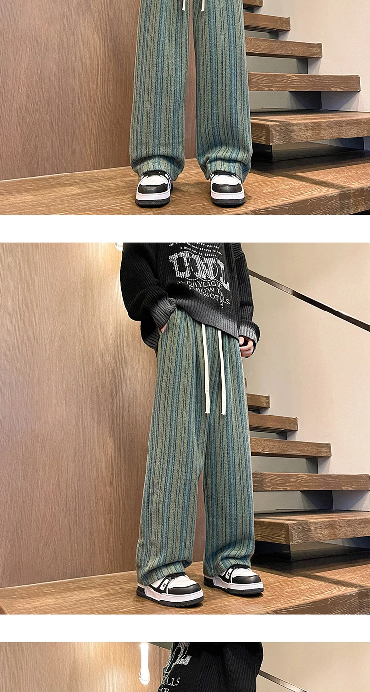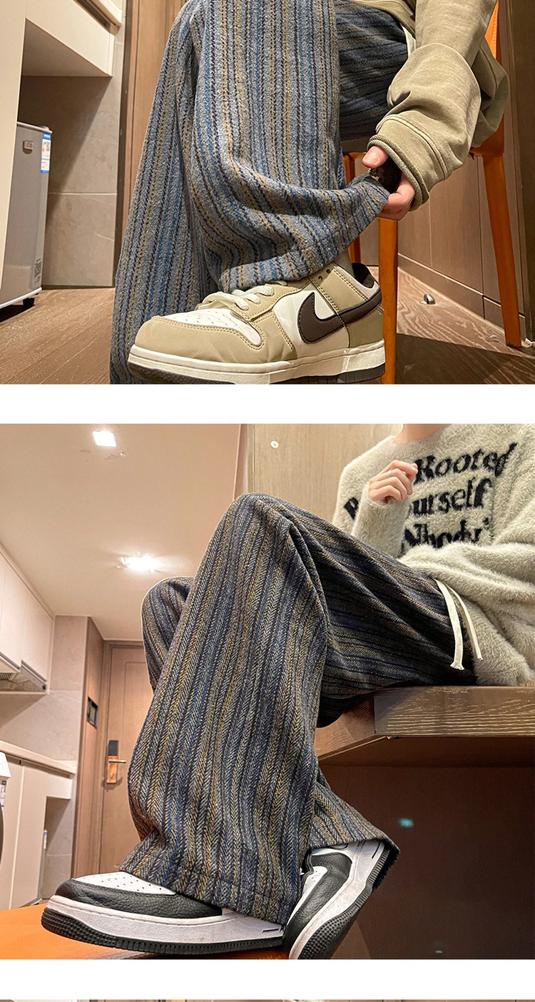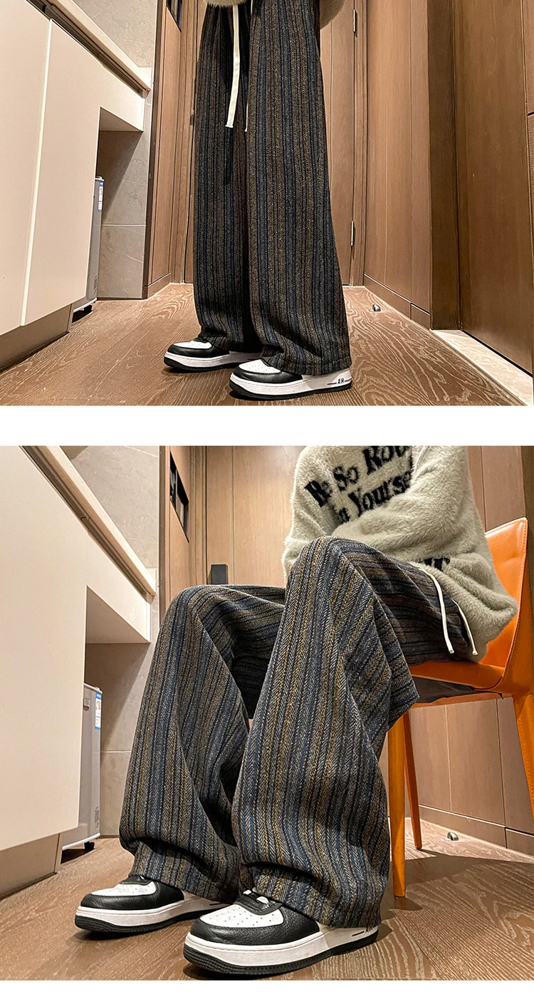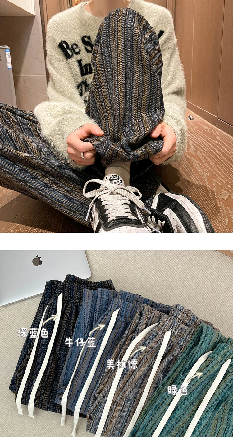 Aidase Wool Men's Pants Autumn and Winter Thickened High Waisted Small Leg Pants Casual Business Striped Contrast Wool Pants Warm
