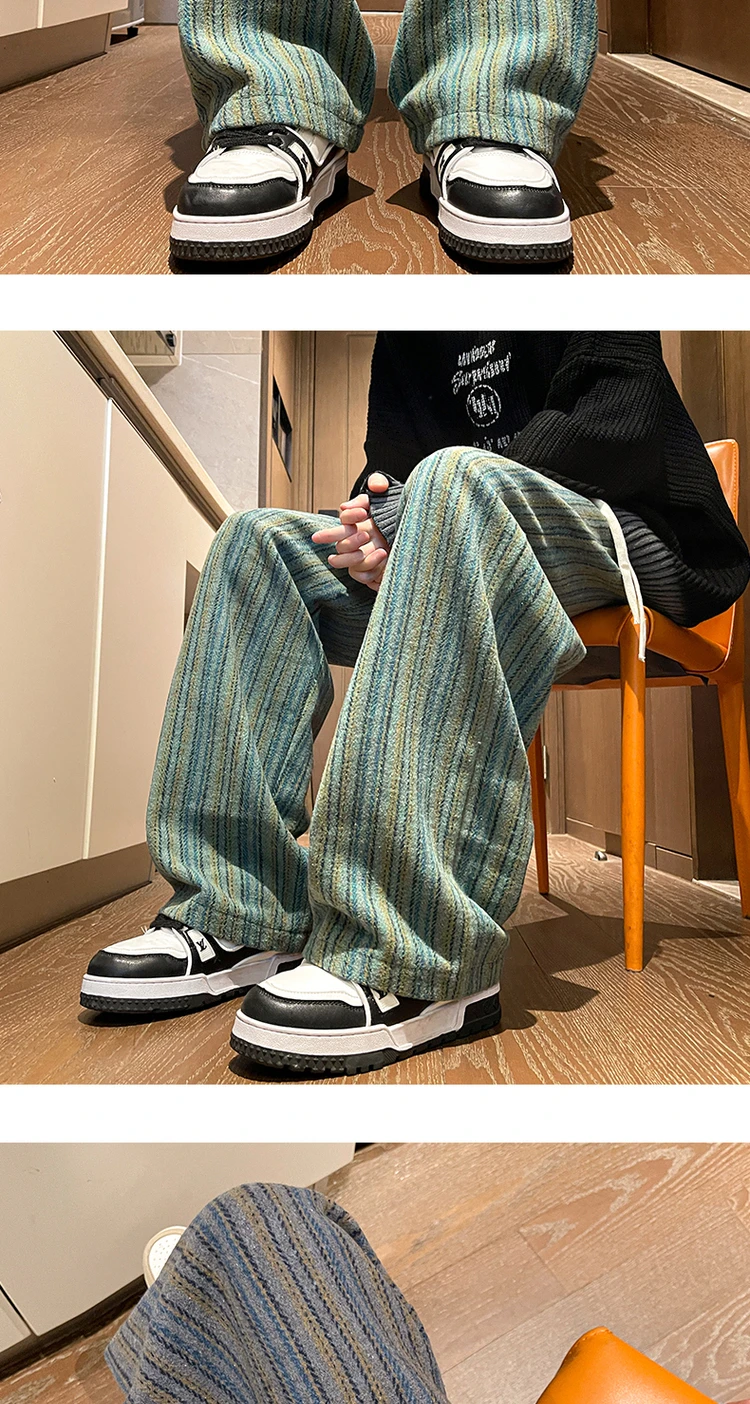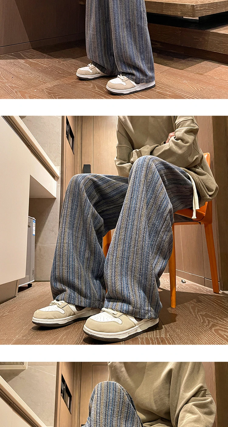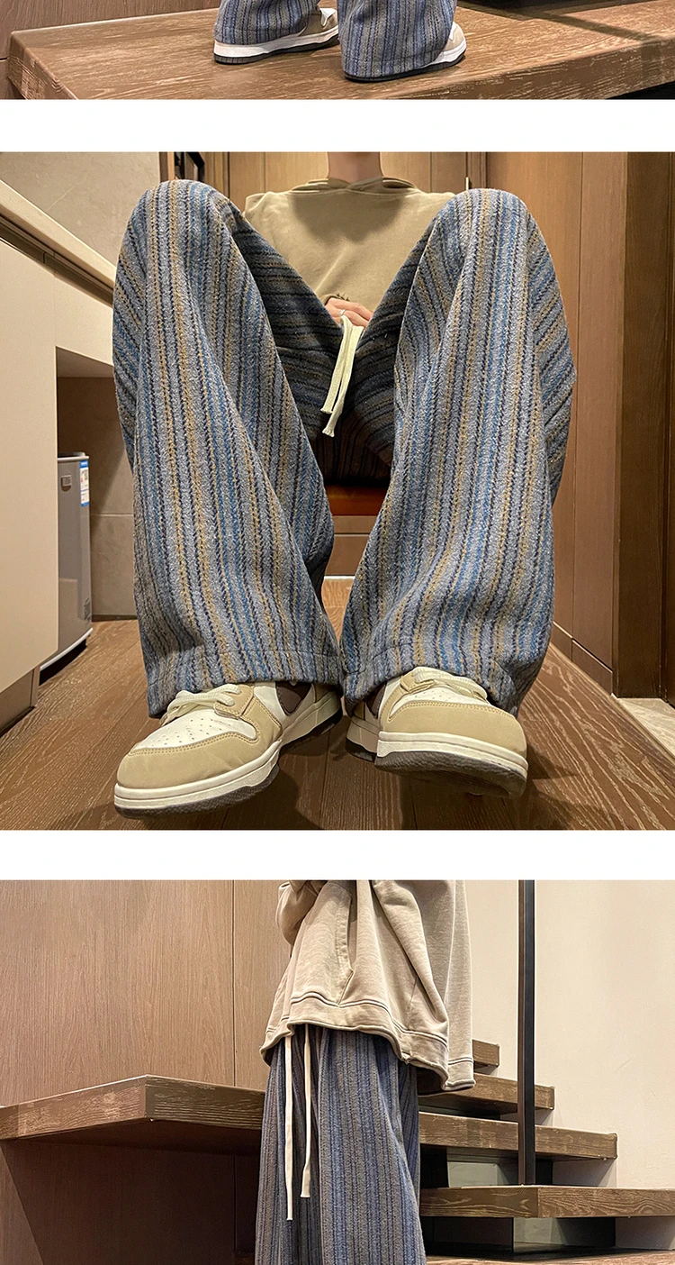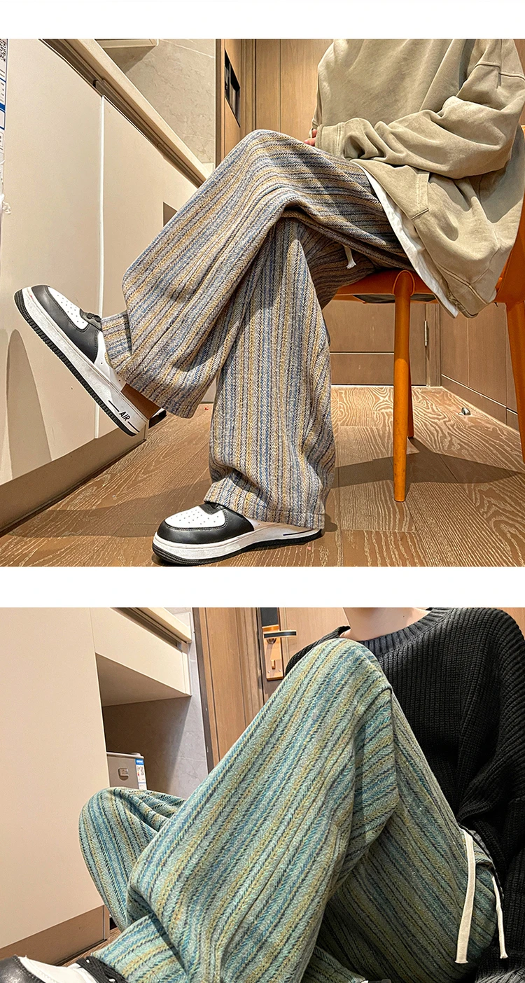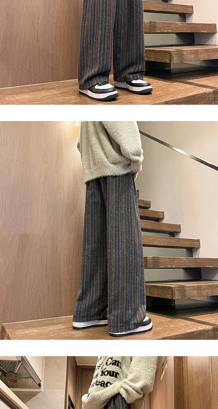Aidase Wool Men's Pants Autumn and Winter Thickened High Waisted Small Leg Pants Casual Business Striped Contrast Wool Pants Warm