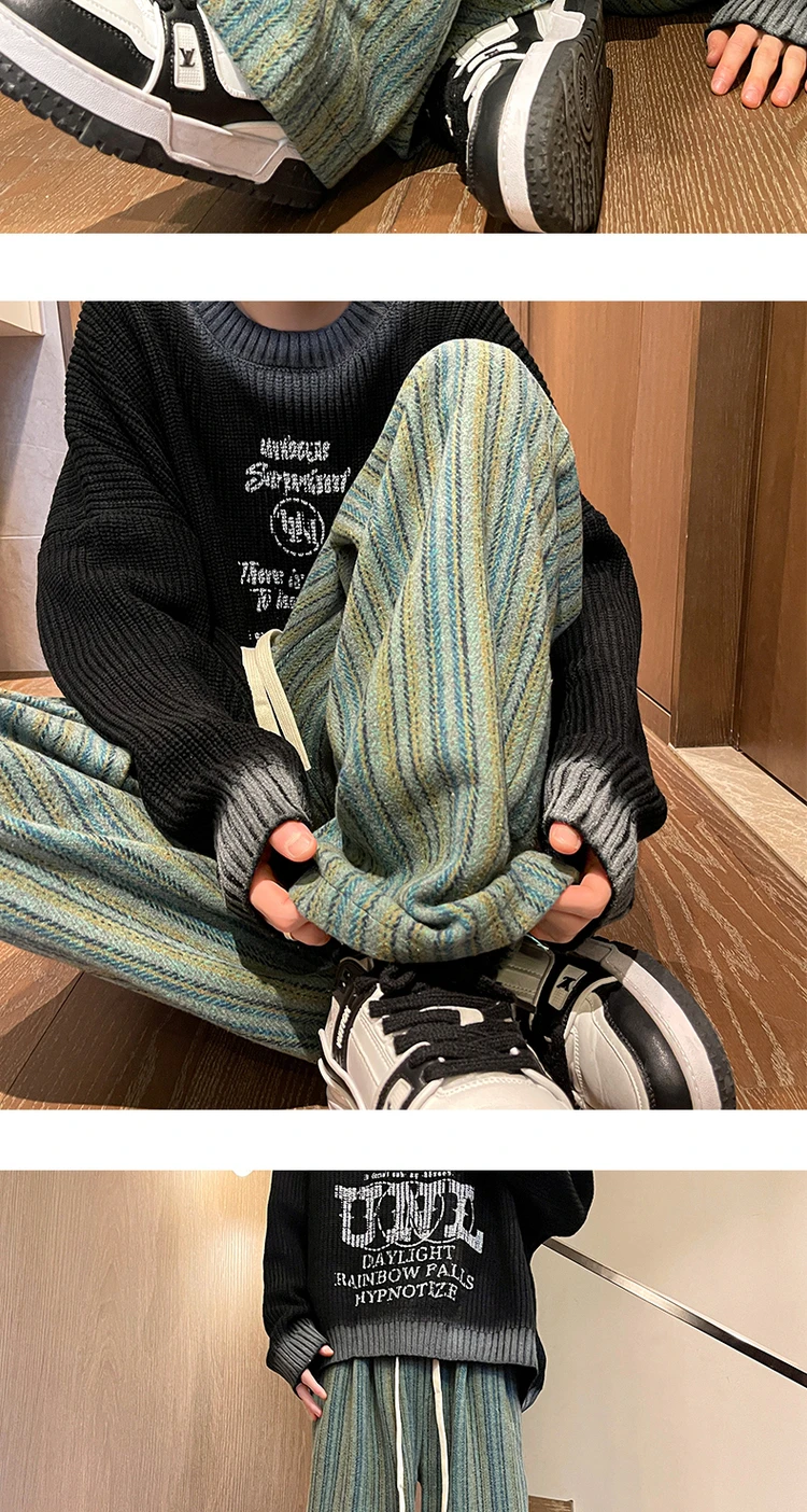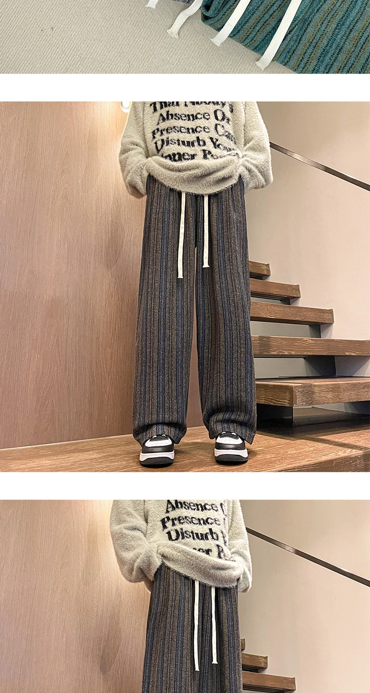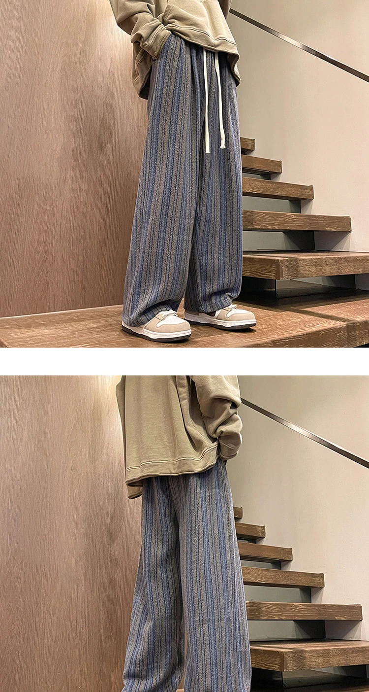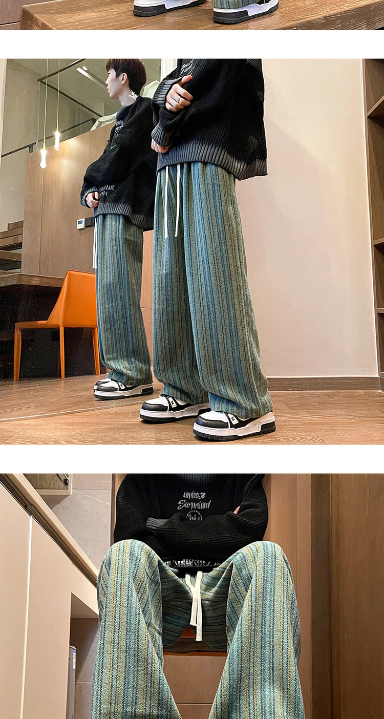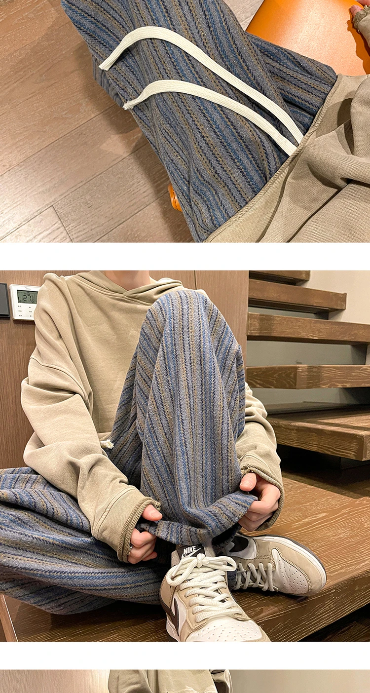 Aidase Wool Men's Pants Autumn and Winter Thickened High Waisted Small Leg Pants Casual Business Striped Contrast Wool Pants Warm