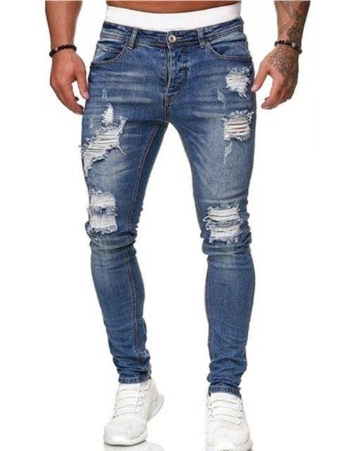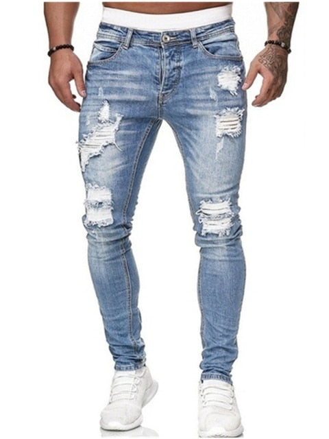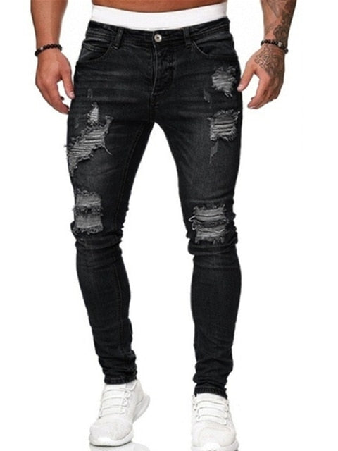 Fashion Men's Skinny Stretch Ripped Male Jeans Slim Fit Denim Trousers Streetwear Gradient White Black Skinny Jeans Men#r