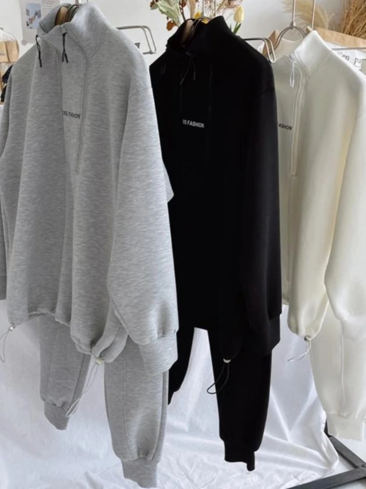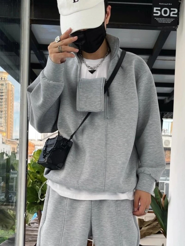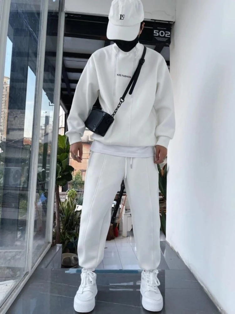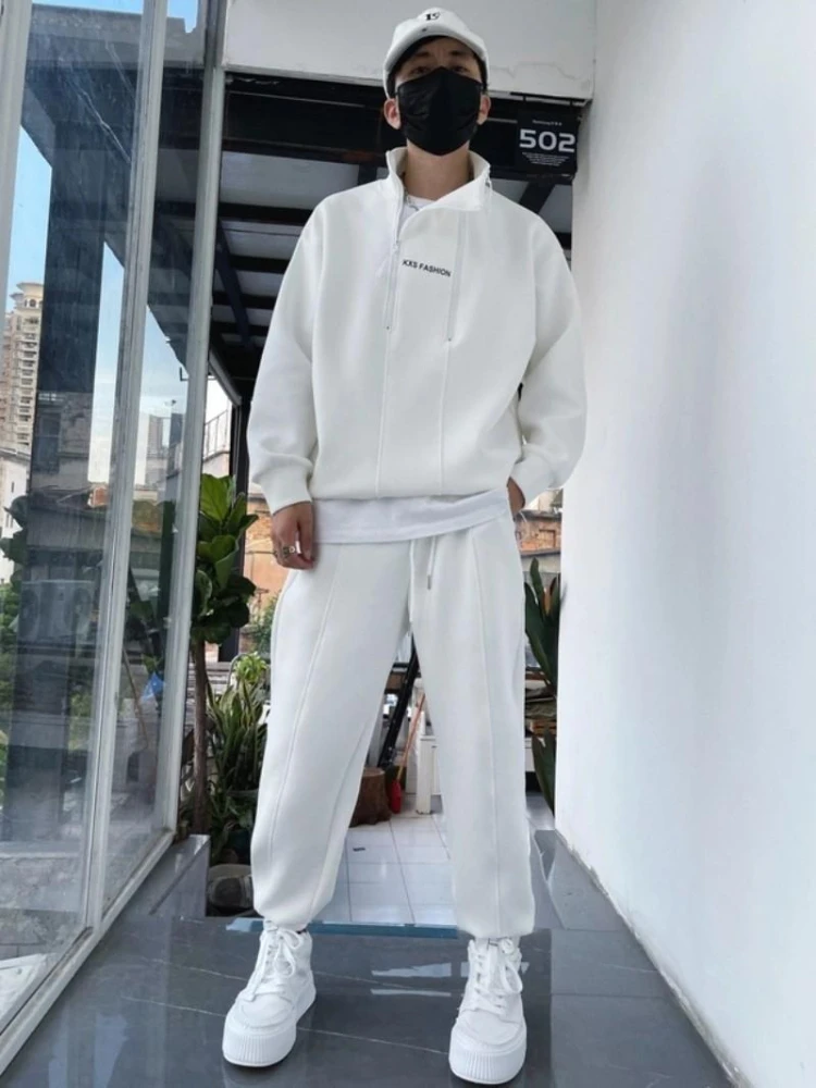 Spring Autumn Suits New Design Double Zipper Half-open High-neck Sweatshirt + Trousers Two-piece Cityboy Solid Suits