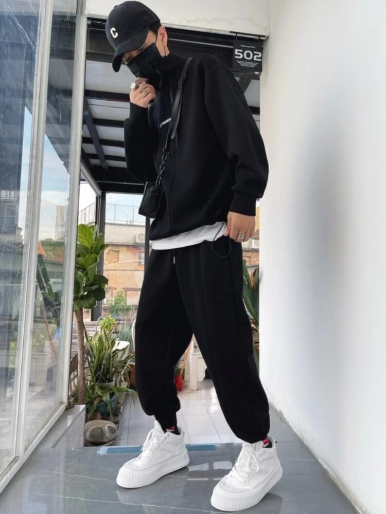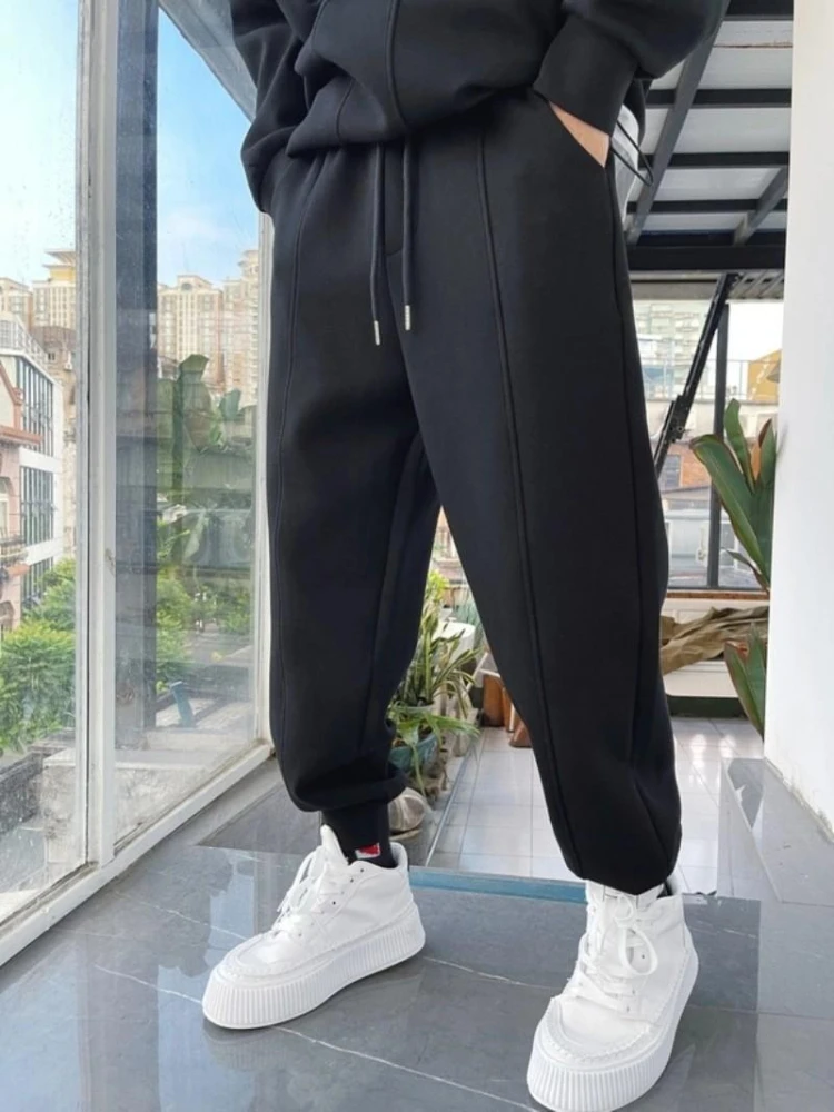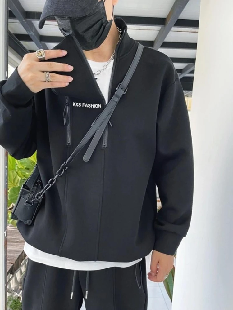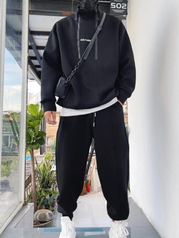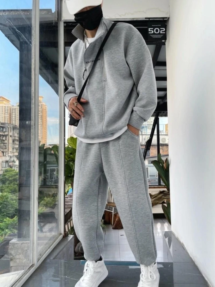 Spring Autumn Suits New Design Double Zipper Half-open High-neck Sweatshirt + Trousers Two-piece Cityboy Solid Suits