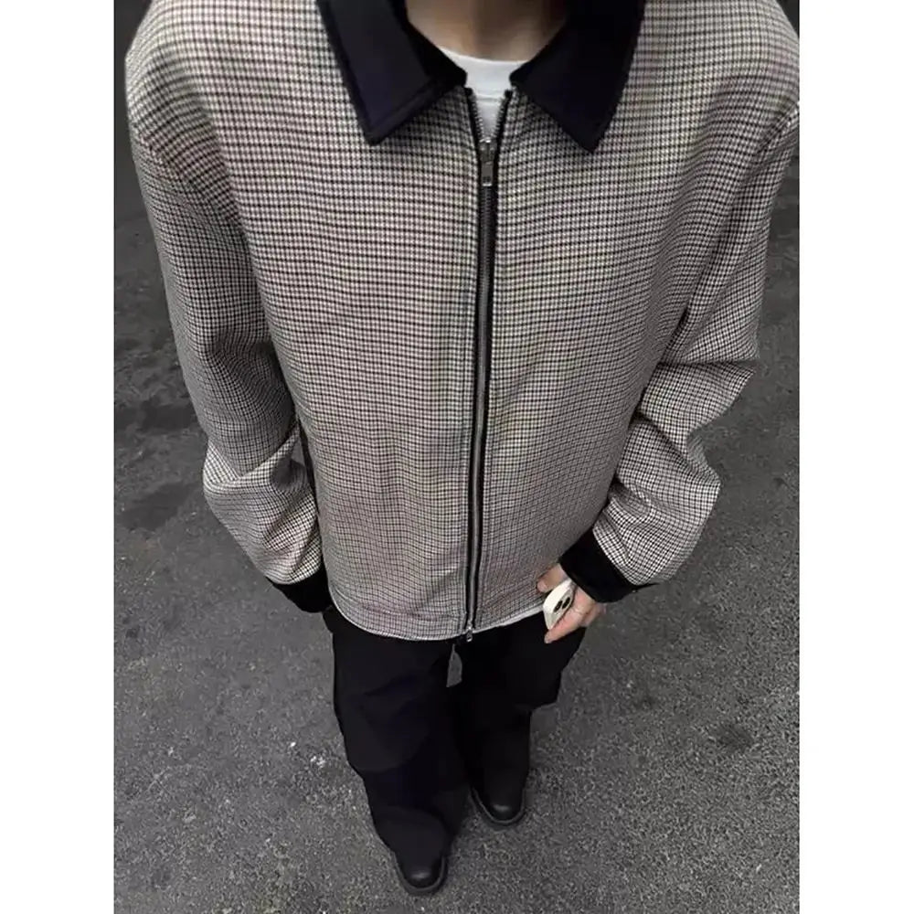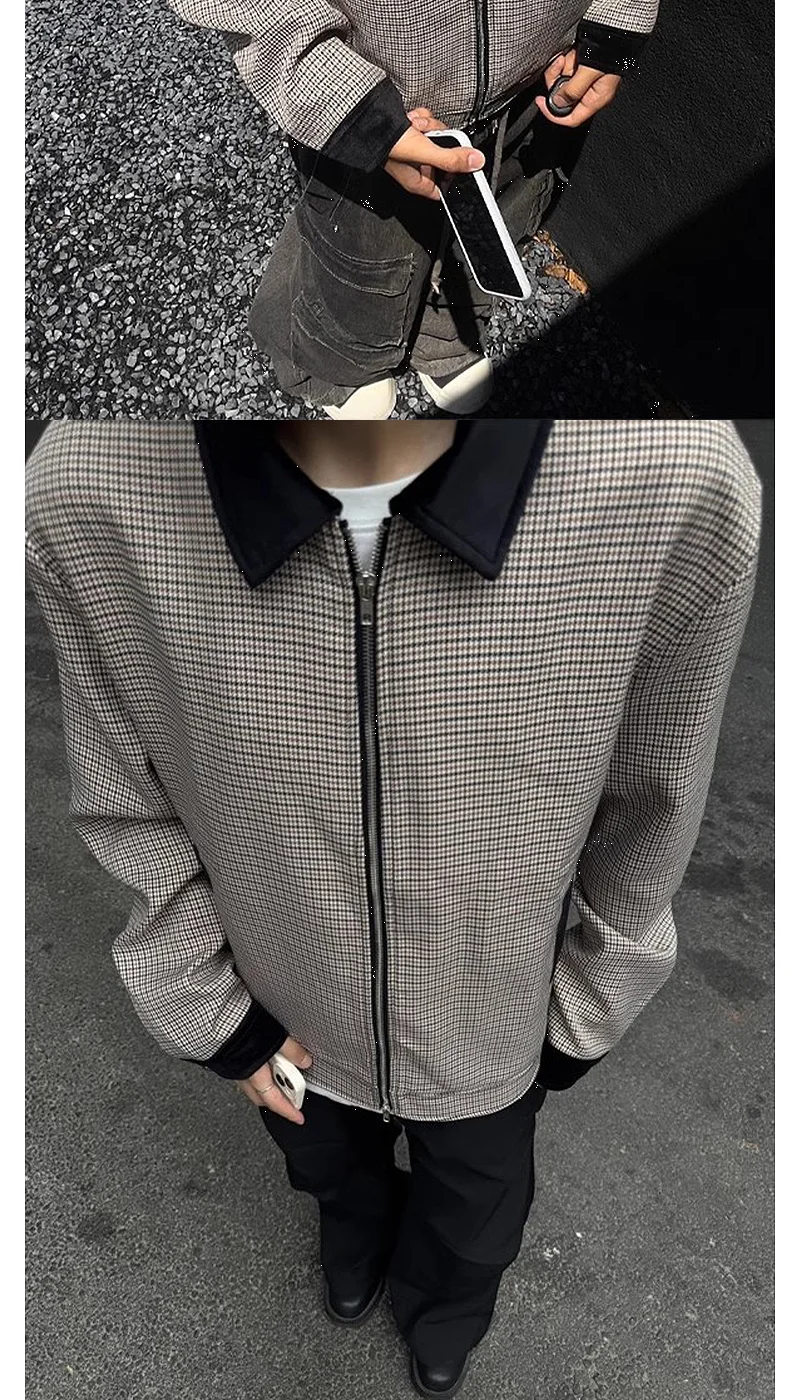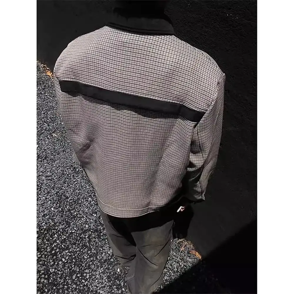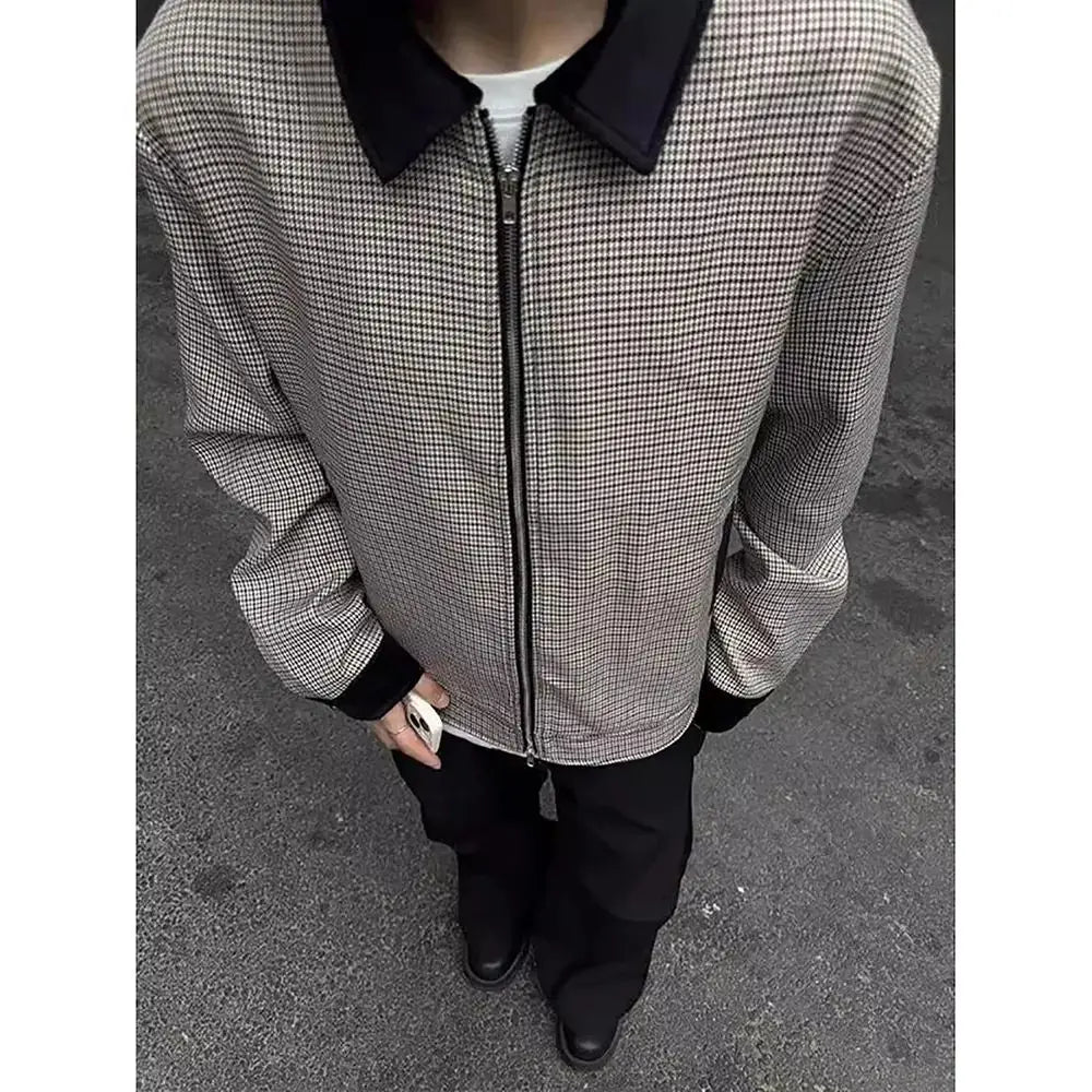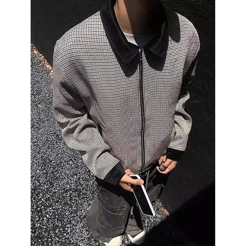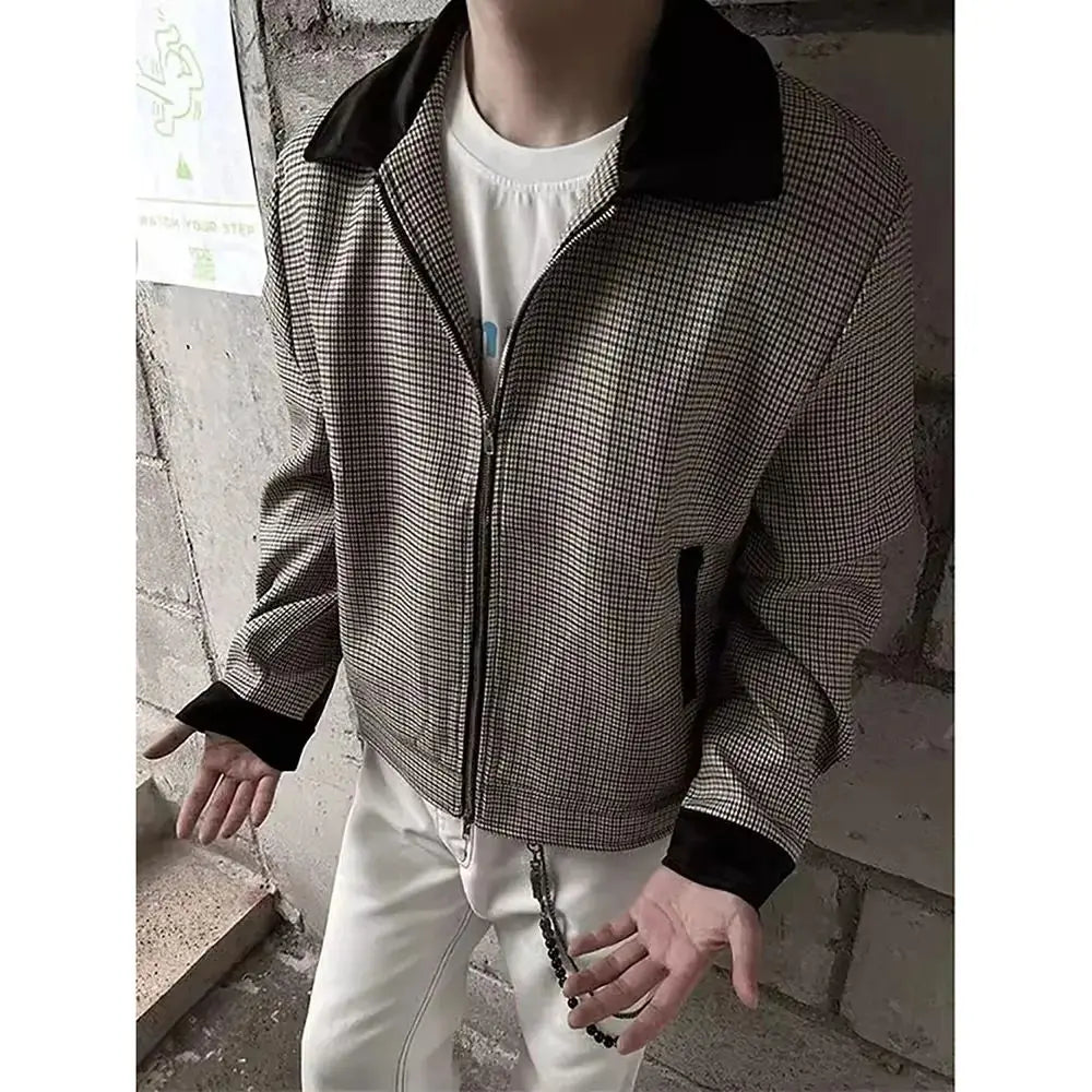Aidase American Retro Color-blocked Houndstooth Short Coat Men Trendy Spring Autumn Y2K High End Handsome Small Fragrant Apel Jacket