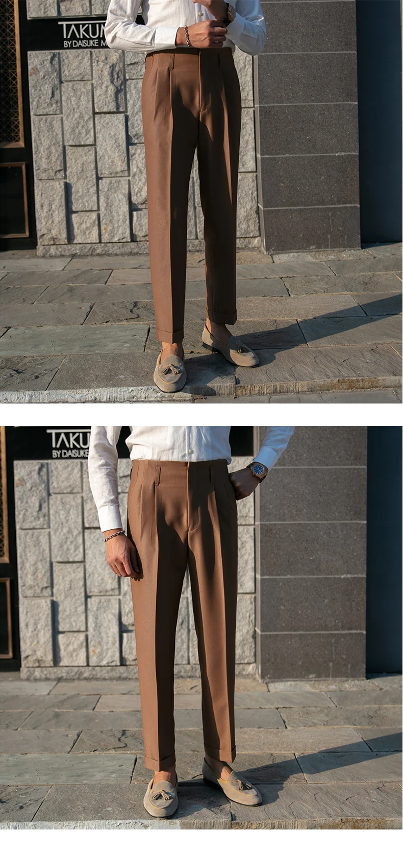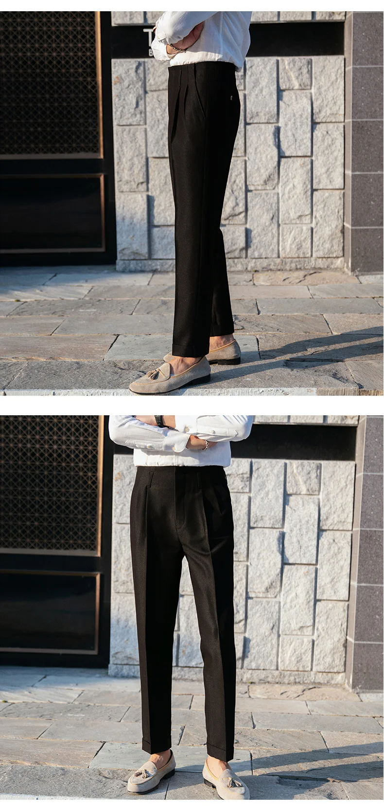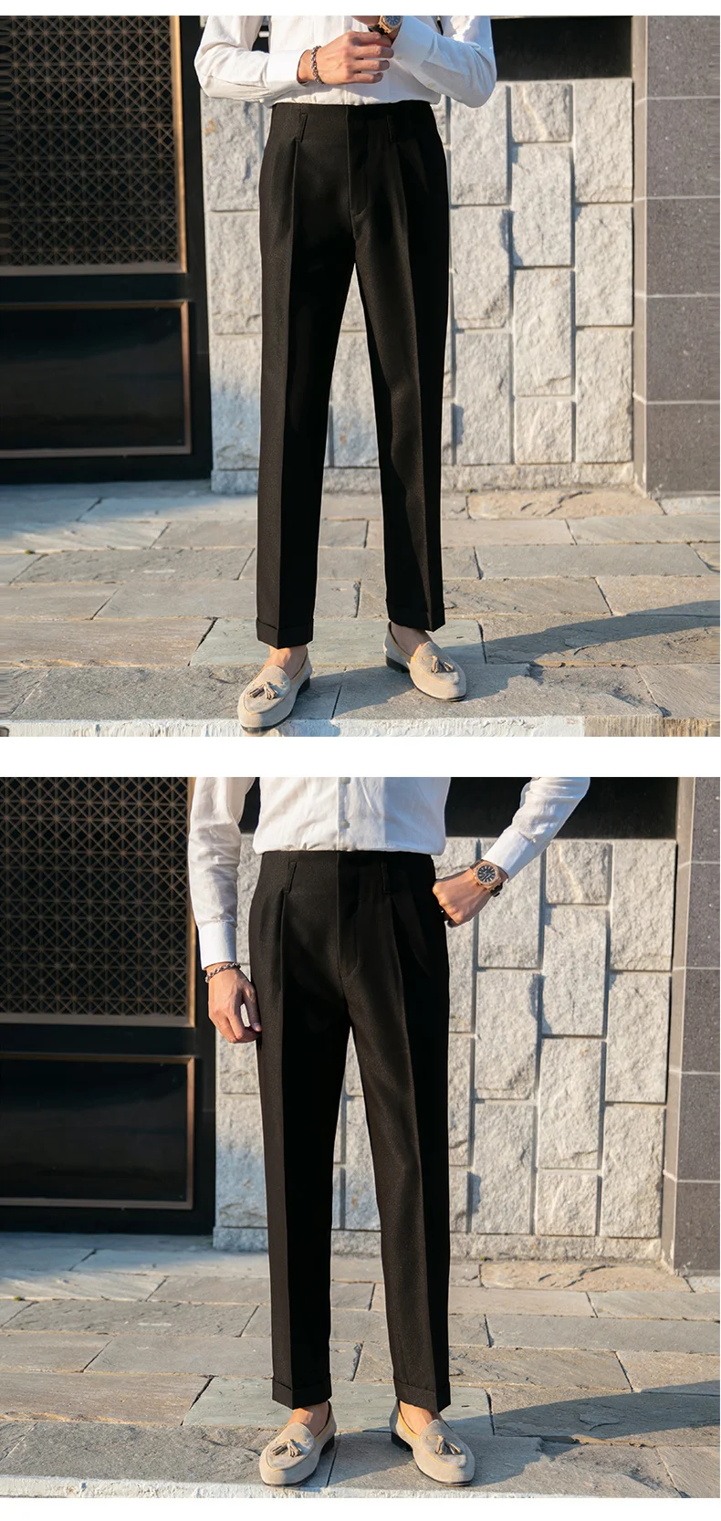 Aidase British Men Paris Waist Straight Pants Italian High Waist Slim Solid Suit Shorts Mannen Kleding Spring Business Korte Homme