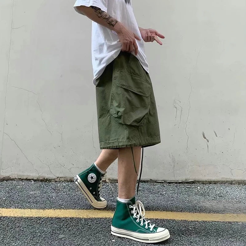 2024 Summer Mens Cargo Shorts Loose Hip Hop Harajuku Straight Streetwear Bermuda Masculina