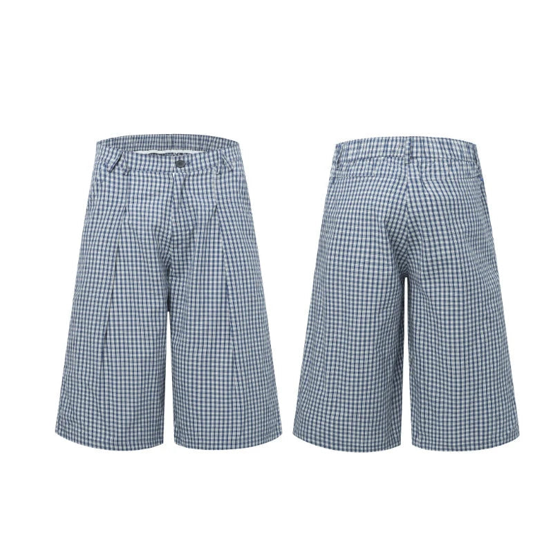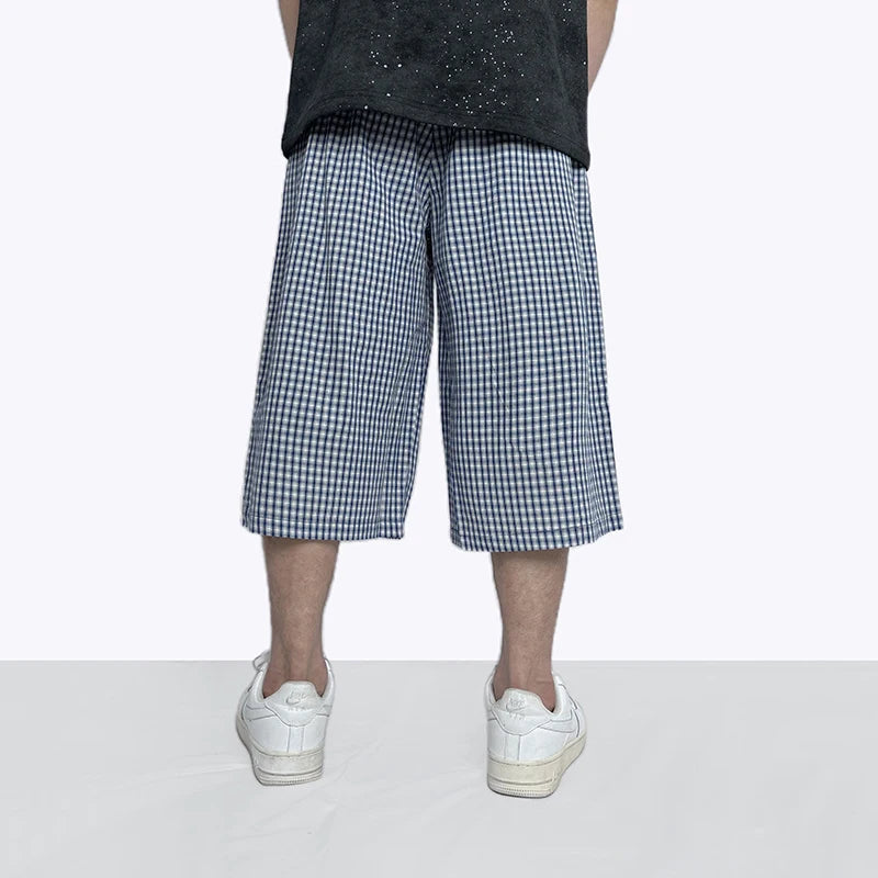 AIDASE - American Style Plaid Men's Shorts Summer Lazy Style Half Elastic Waist Wide Leg Pants Knee Length 2025 Trend 9W3360