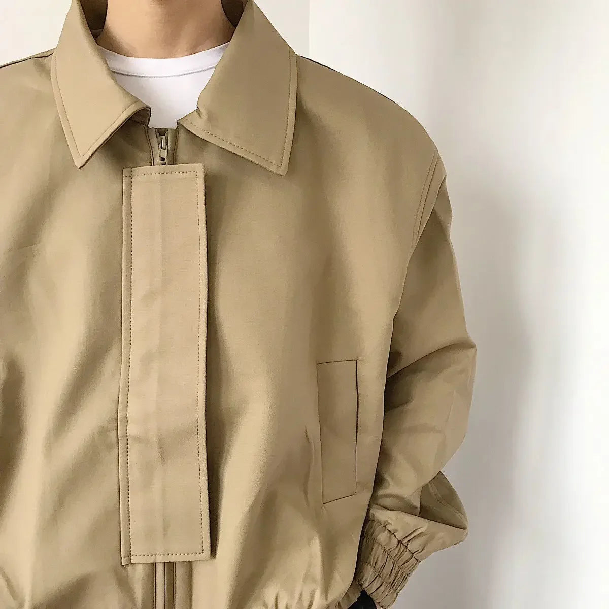 Aidase Autumn Korean Fashion New Short Men's Jackets Long Sleeve Khaki Square Collar Loose Casual Zipper Bomber Jacket Coats Men