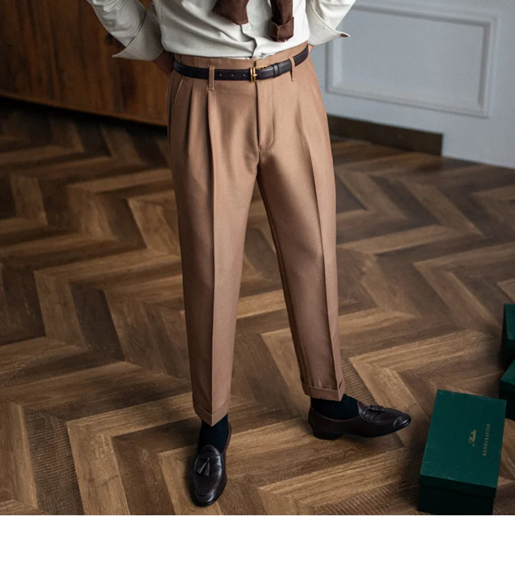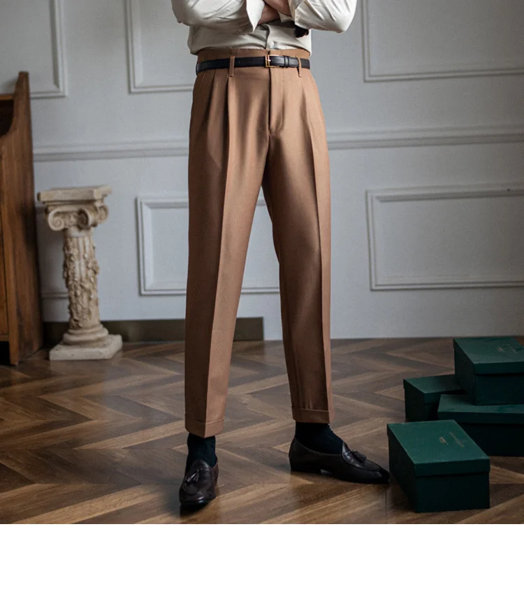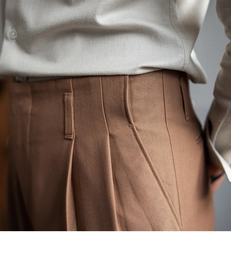 British Men Summer Paris Waist Straight Pants Italian High Waist Slim Solid Suit Shorts Man Business
