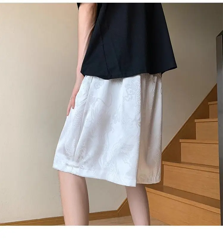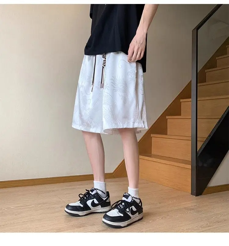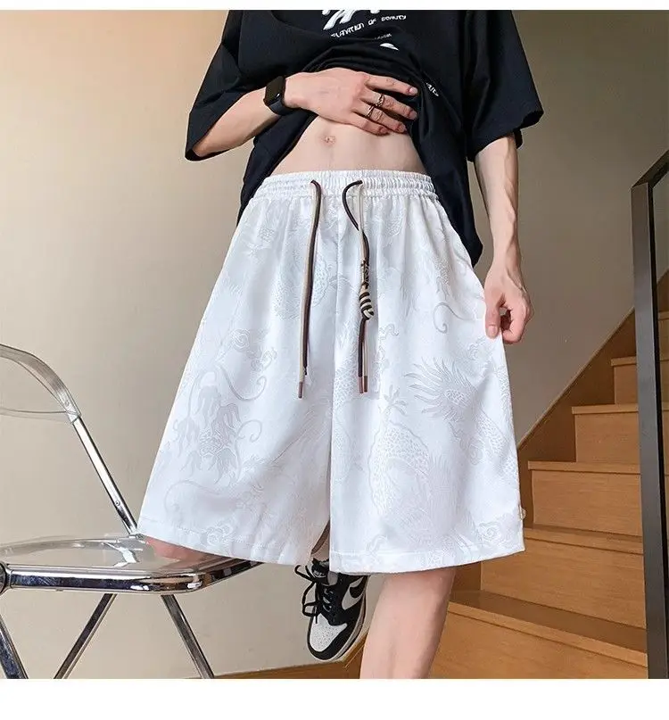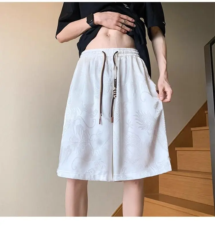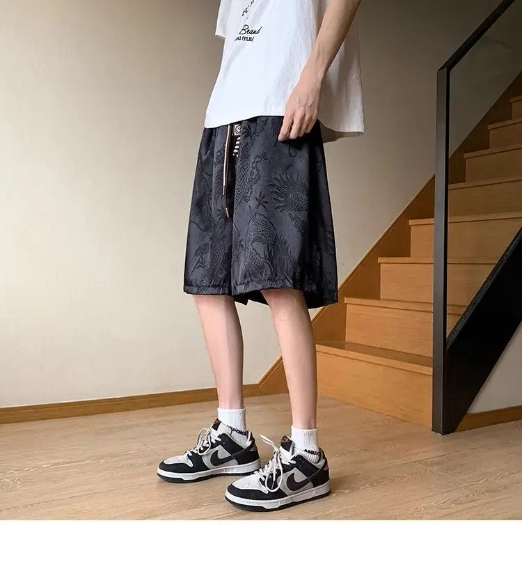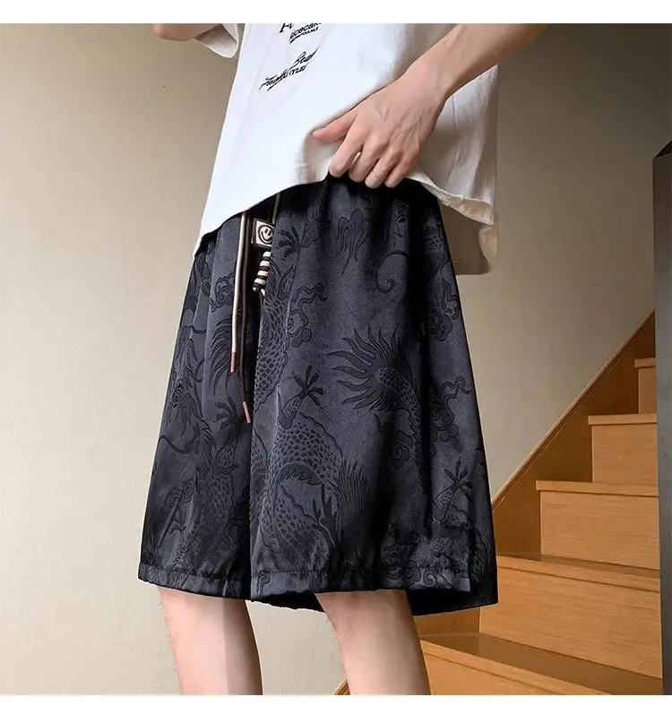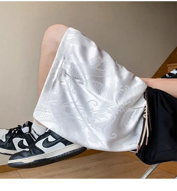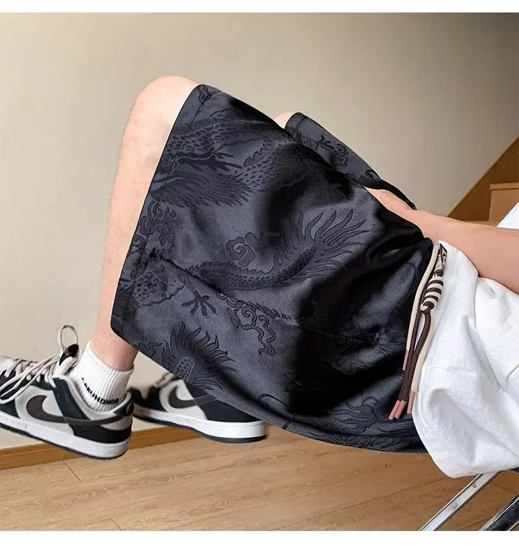 AIDASE - Chinese Style Dragon Pattern Ice Silk Jacquard Shorts Men's Summer Loose High-end Sports Trendy Casual Five-point Pants