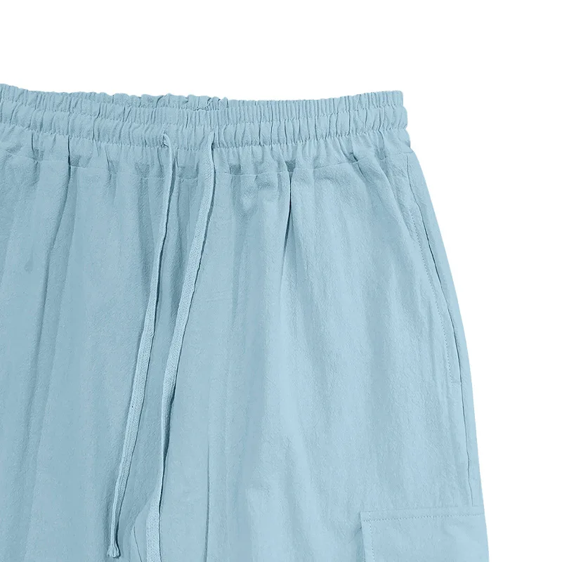 AIDASE - cotton and linen tooling shorts, drawstring elastic waist, multi-pocket breathable five-point casual pants