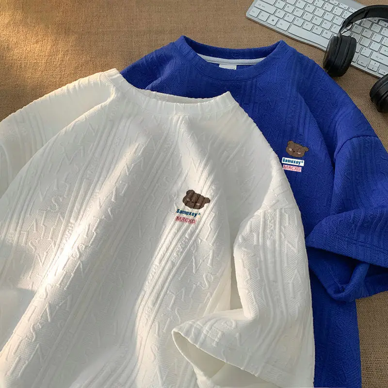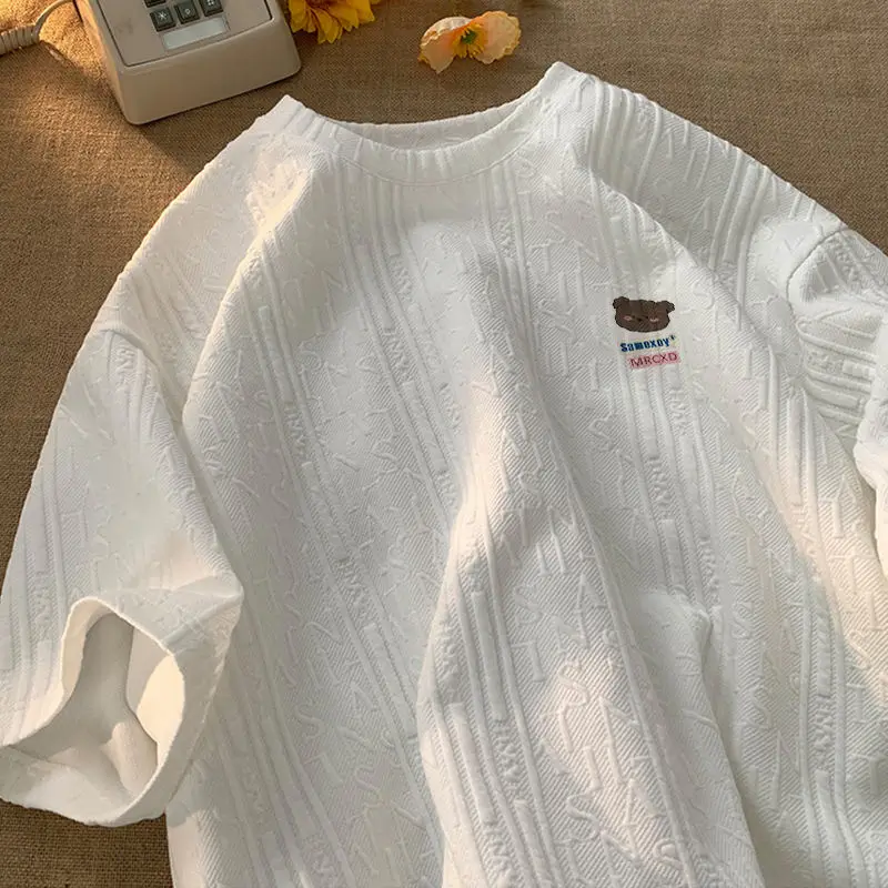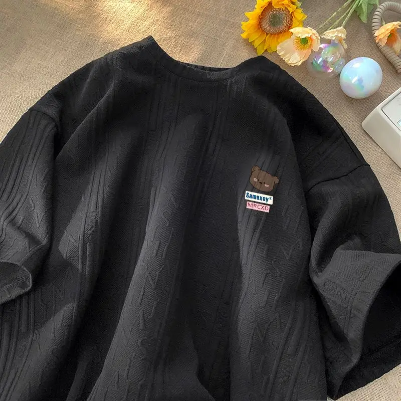Aidase Fashionable Waffle Short-sleeved Summer Women's Design Niche Half-sleeves Simple Korean Style Loose Three-quarter Sleeves Urban