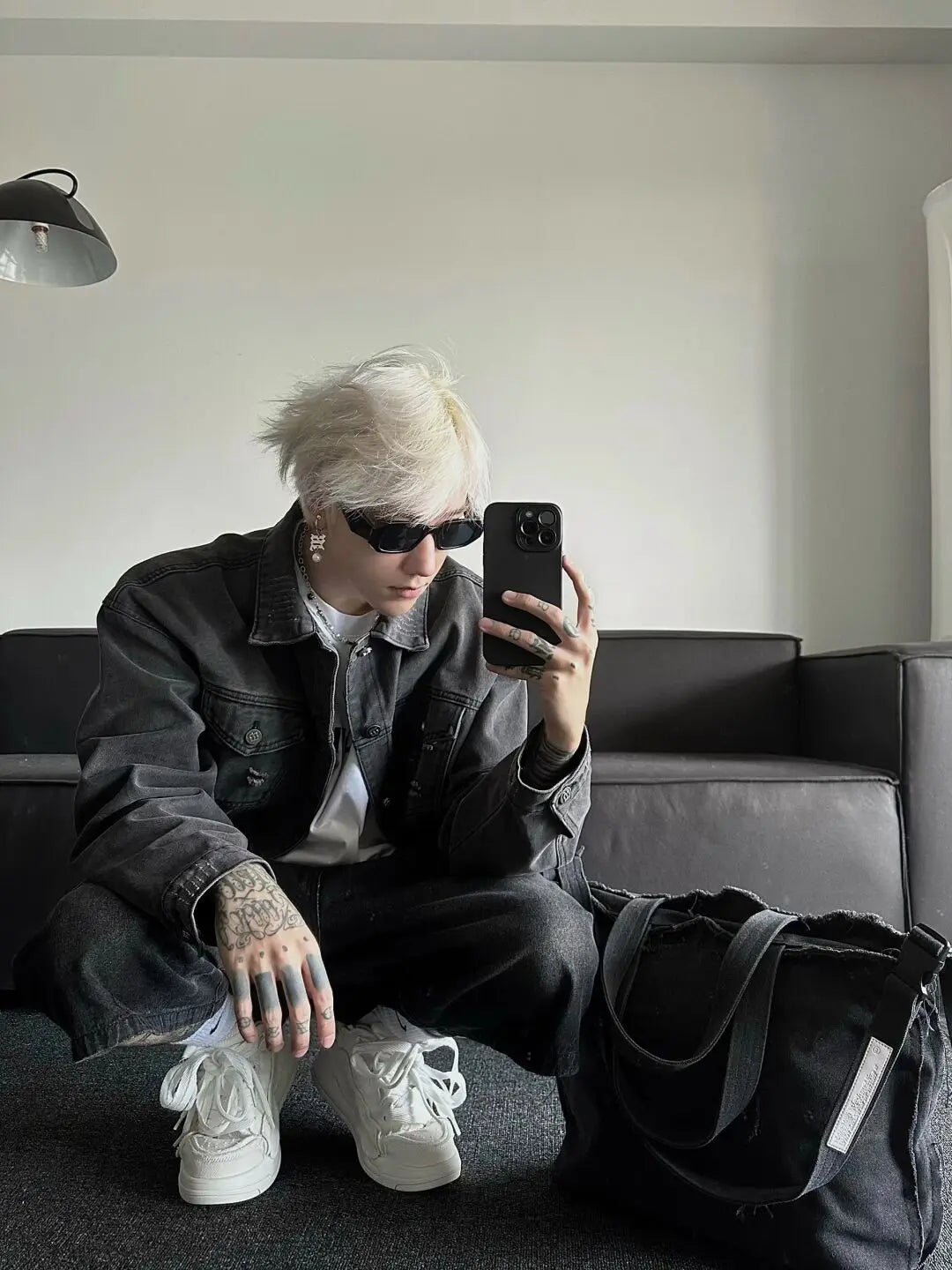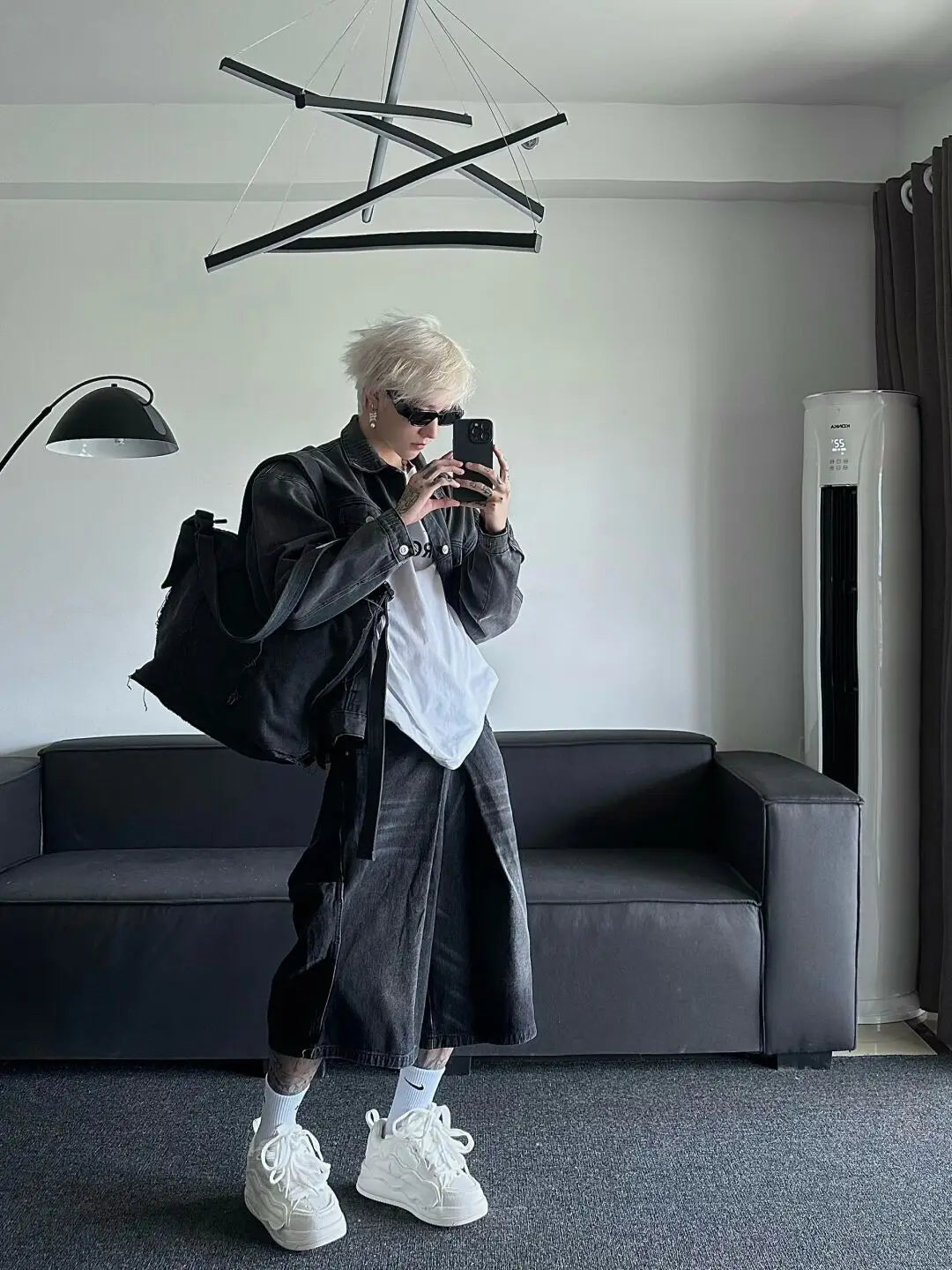 Aidase Hip-hop Men Jorts Low Rise Brushed Black Baggy Jeans Cropped Frayed Wide Leg Denim Shorts Oversize Pants Male Trousers