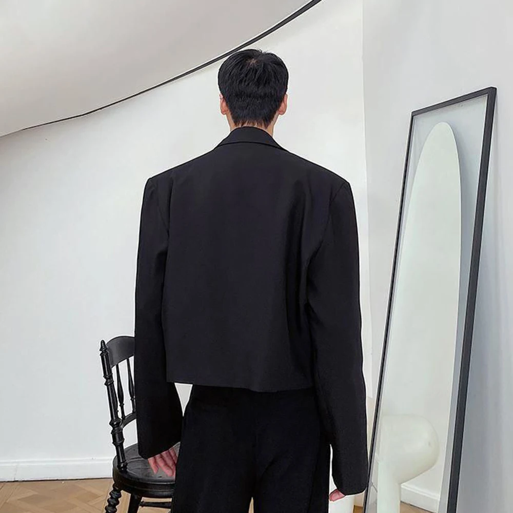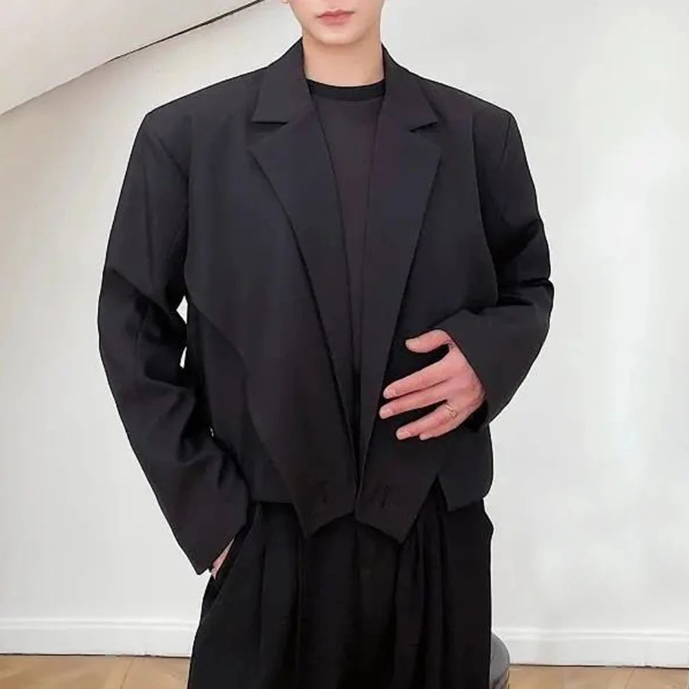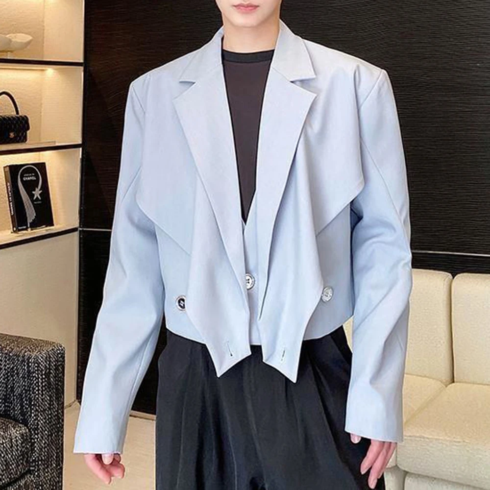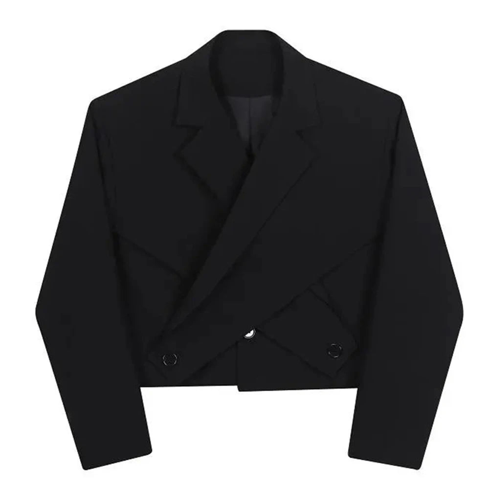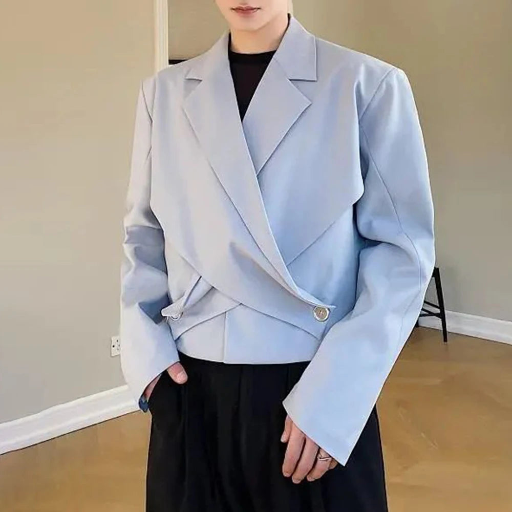 Men Autumn Winter Irregular Solid Color Cross Design Splicing Suit Genderless French Elegant Fashion Trend Short Casual Suit