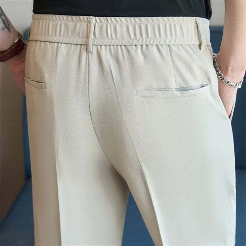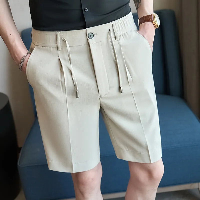 AIDASE - Men's Elastic Waist Suit Shorts Summer Solid Drawstring Business Casual Knee Length Pants Male Korean Fashion Short Trousers