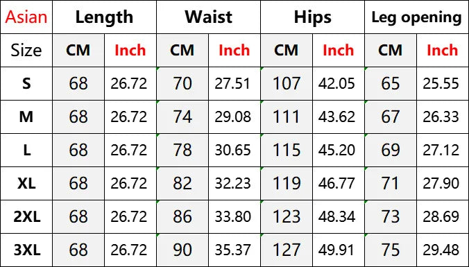 PANTS SIZE (Unit: CM)