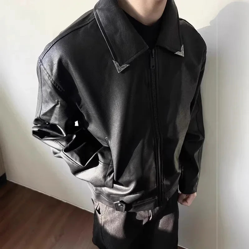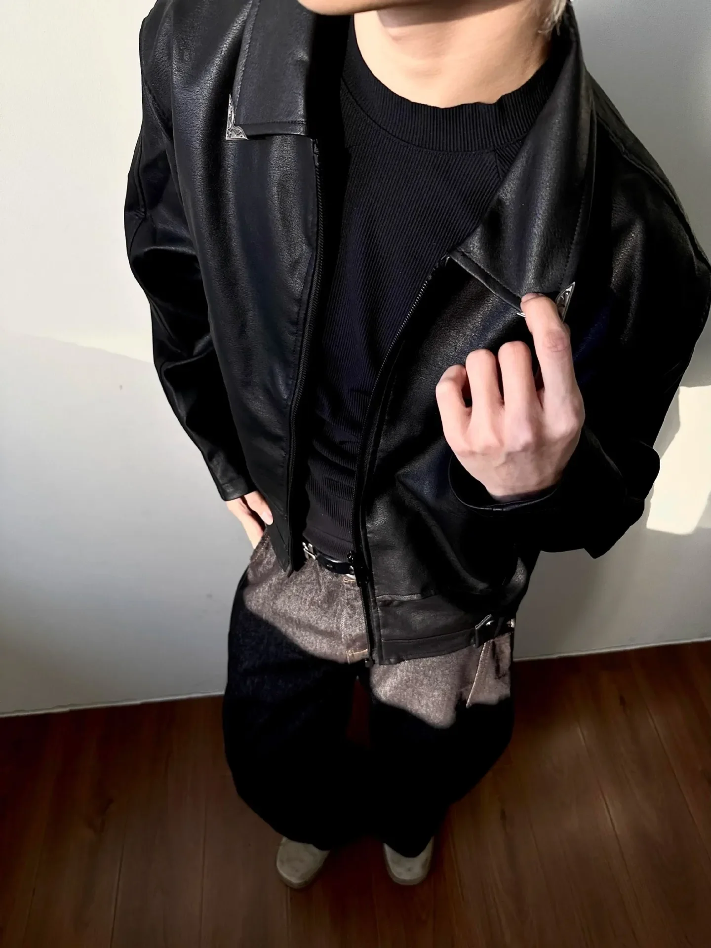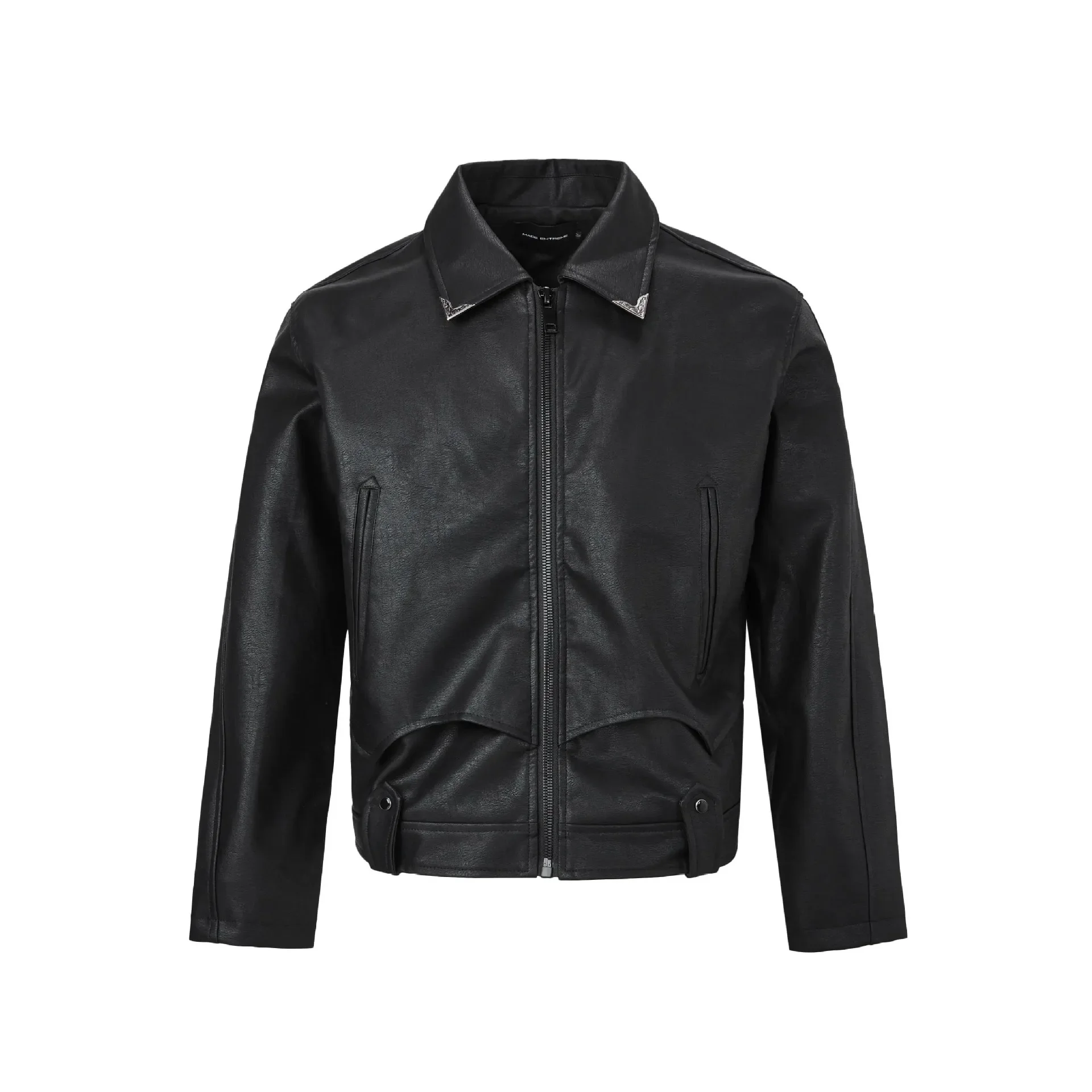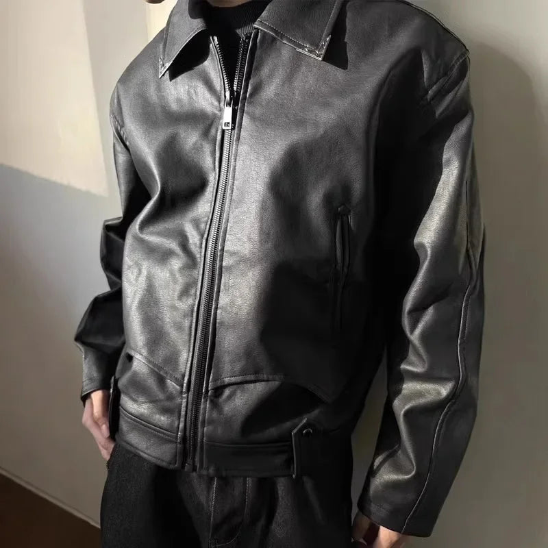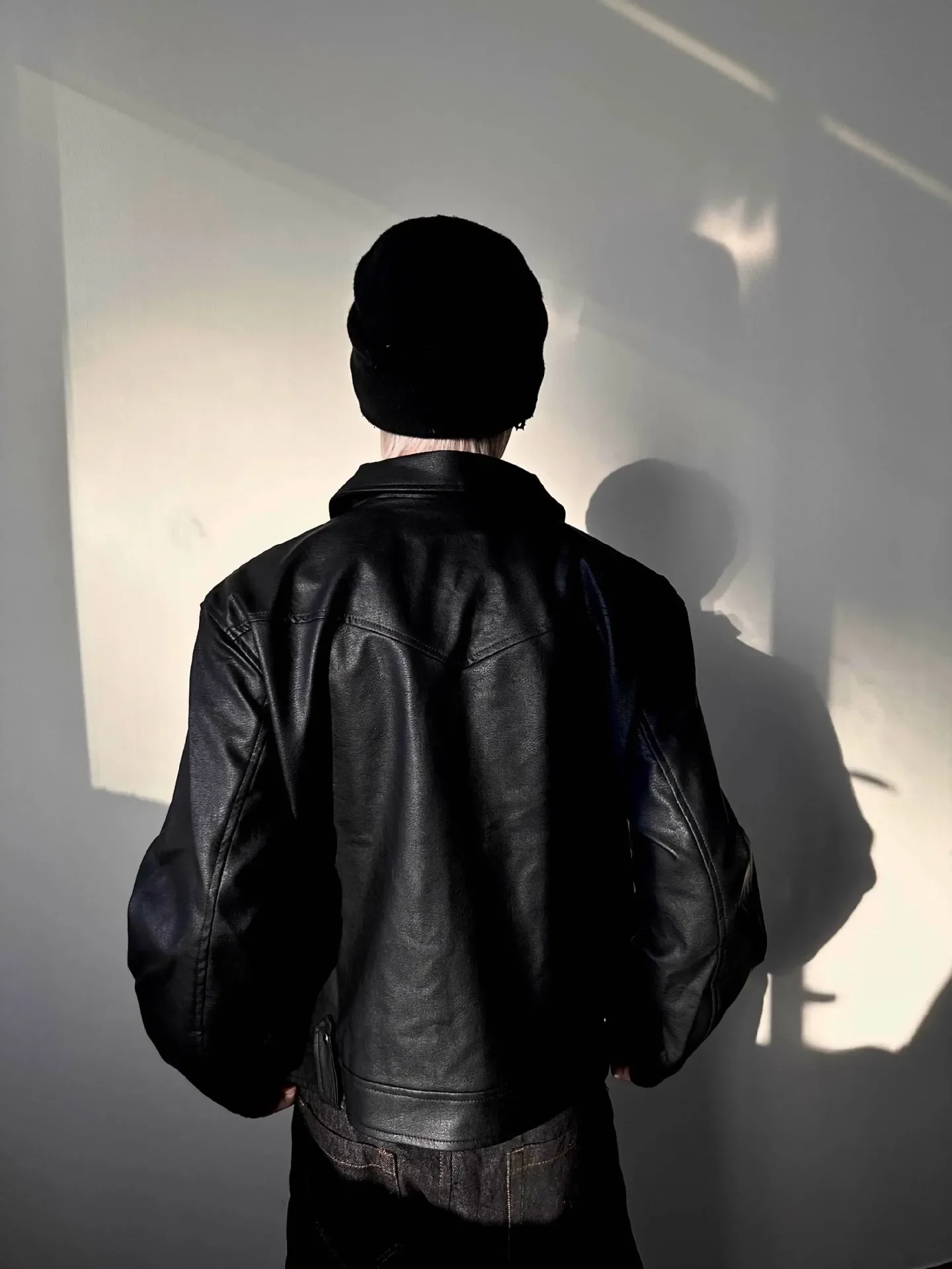 AIDASE - Short Black Leather Jacket Men's Spring Autumn Stylish American Retro Crack Texture Pilot Motorcycle Vest Jacket
