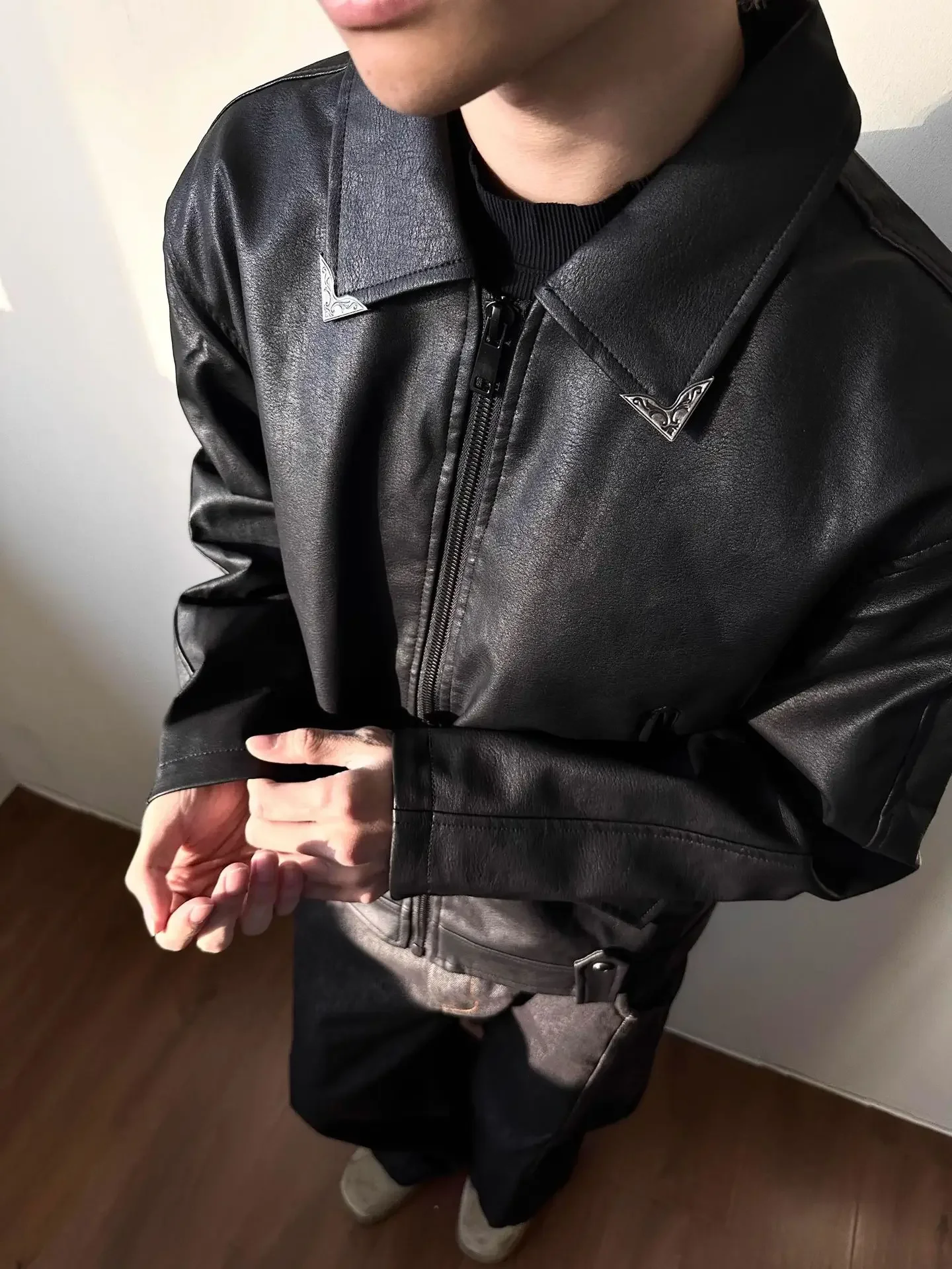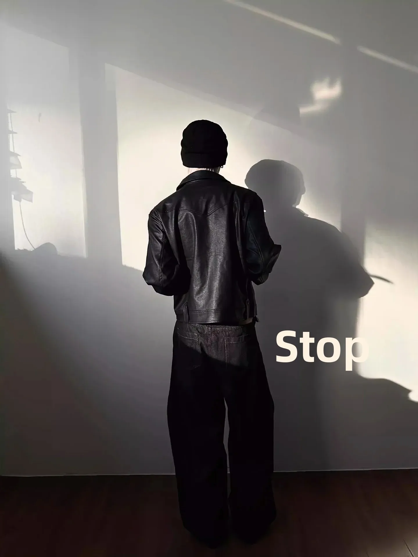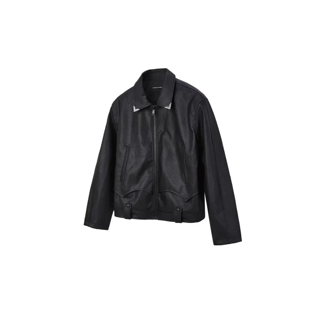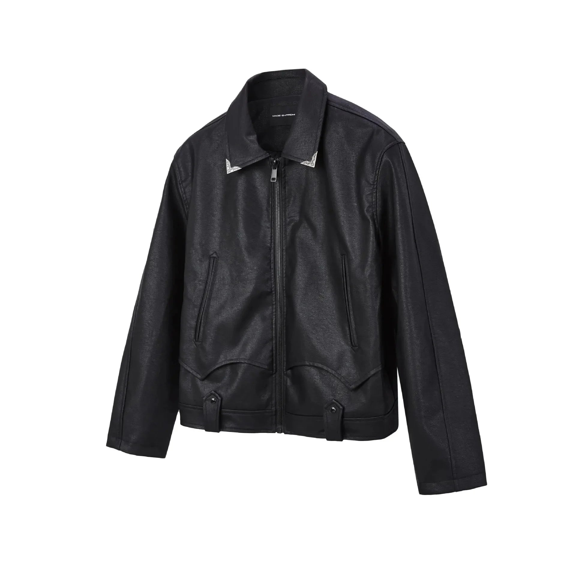 AIDASE - Short Black Leather Jacket Men's Spring Autumn Stylish American Retro Crack Texture Pilot Motorcycle Vest Jacket