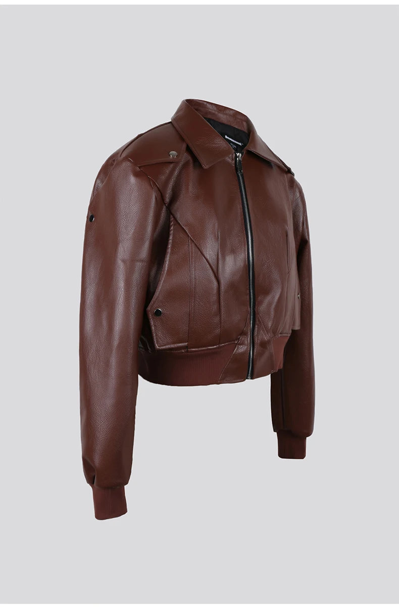 Aidase Spring Autumn Cool Handsome Short Oversized Black Pu Leather Jacket Men with Shoulder Pads Long Sleeve Zipper