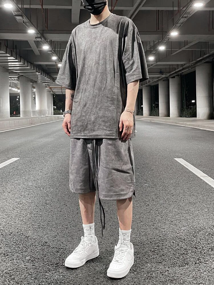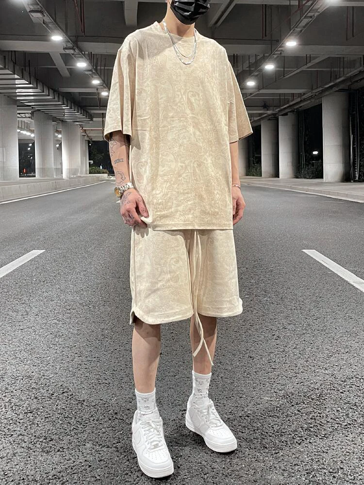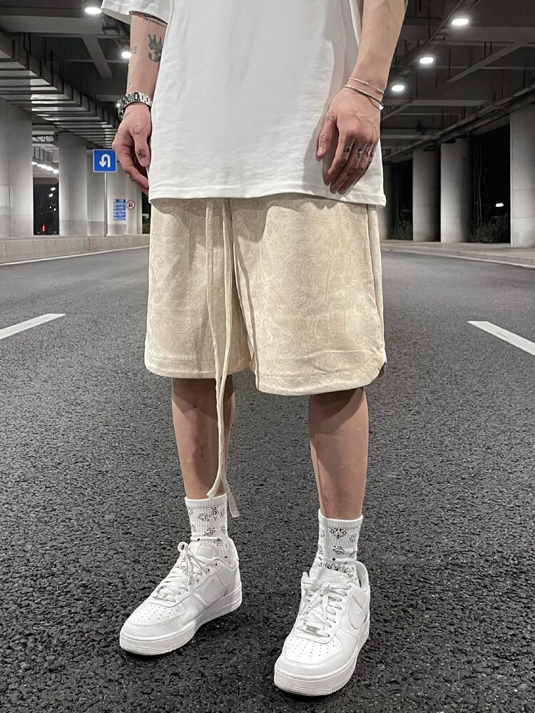 Aidase mens outfits Suede Cashew Flower Printed Shorts Mens Street Loose Casual Velvet Joggers Elastic Waist Sweat Shorts in Summer Oversize Clothes