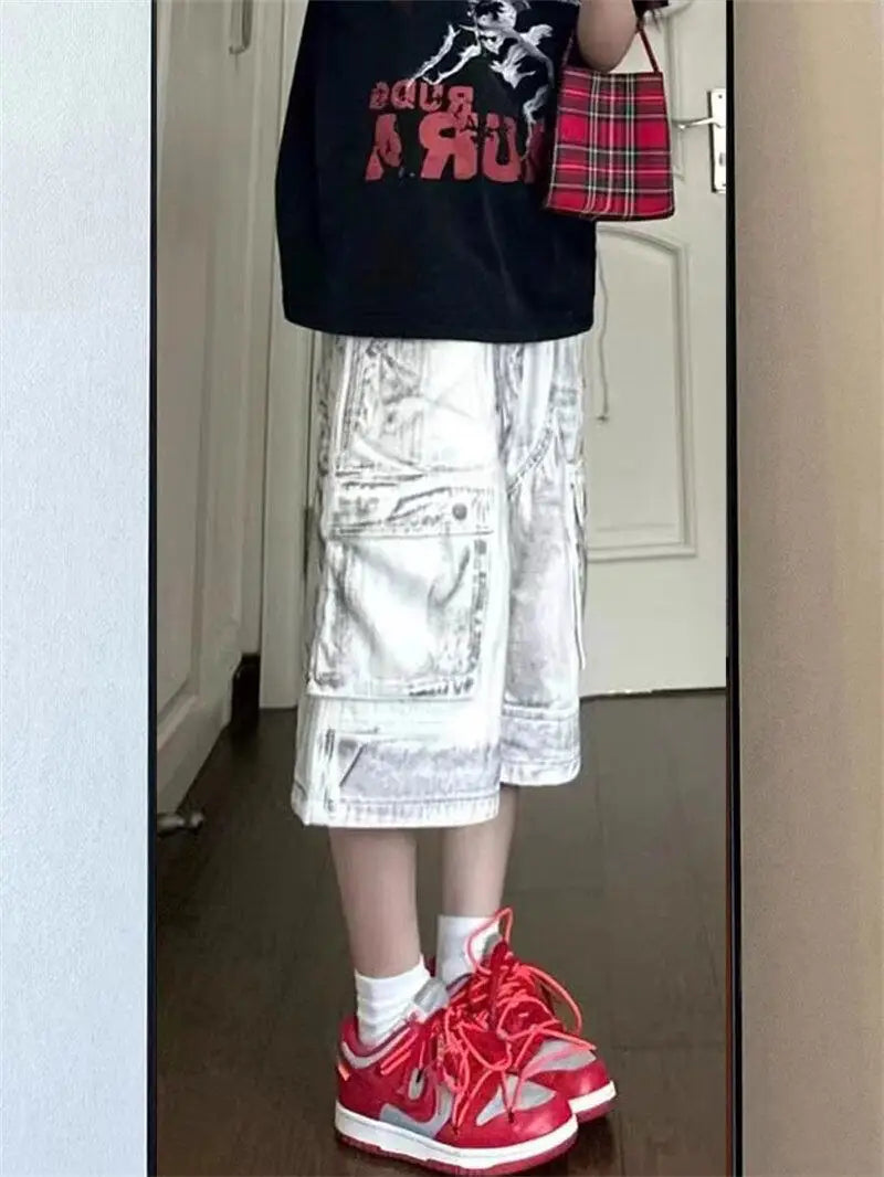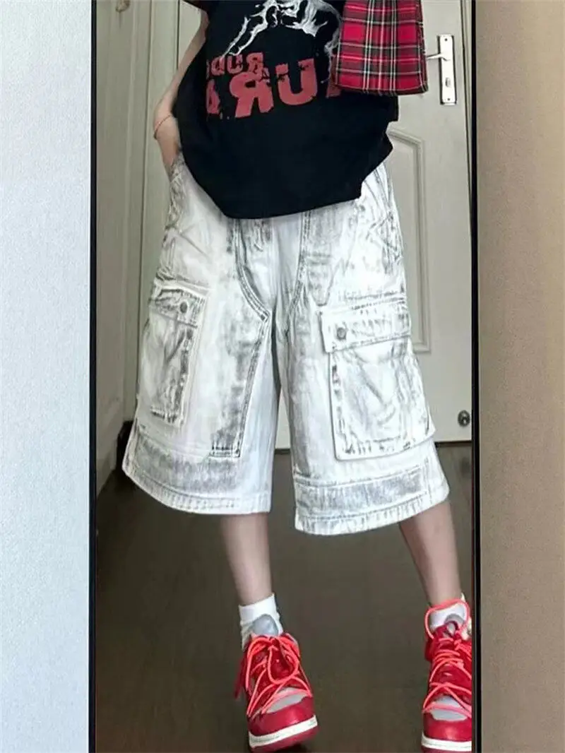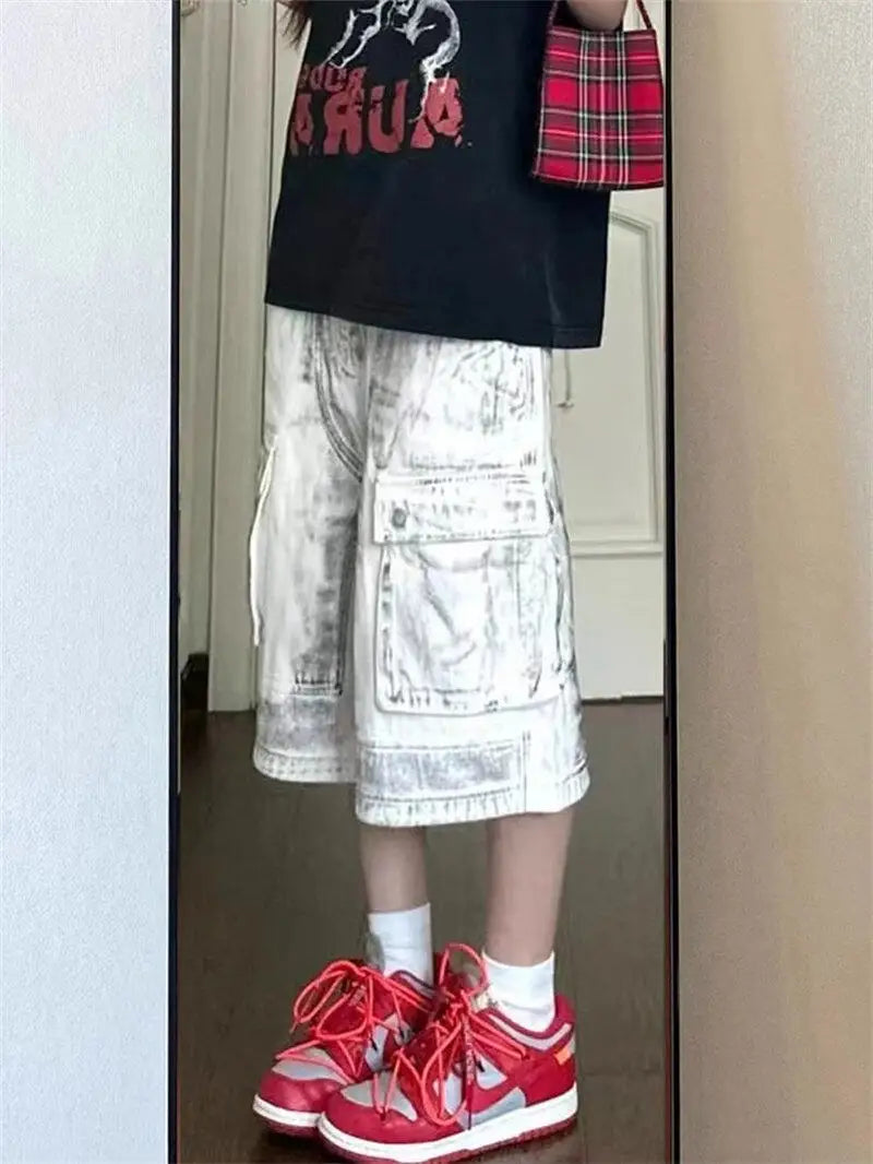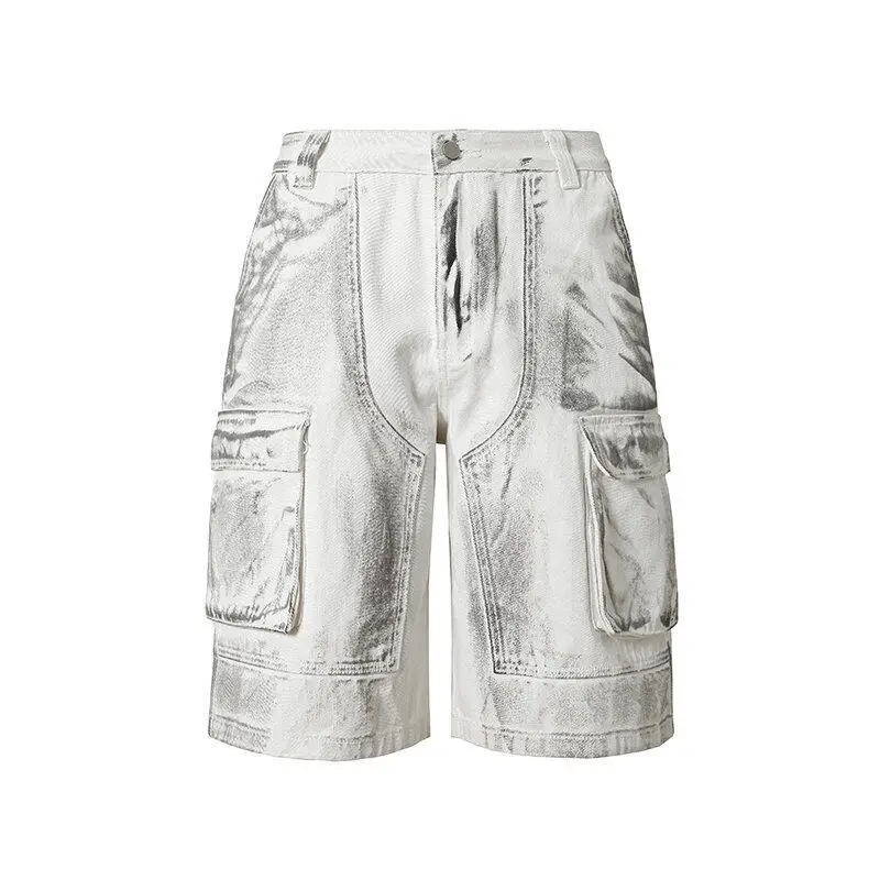 AIDASE - Summer New High Street Workwear Denim Shorts 2025 Tie-dyed Pocket Design Korea Fashion Male Trousers