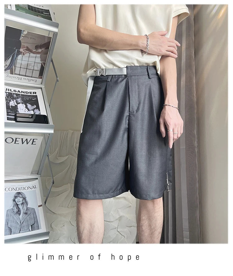Aidase Summer Suit Shorts Men Fashion Social Mens Dress Shorts Korean Loose Business Casual Shorts Mens Grey Black Office Formal Shorts