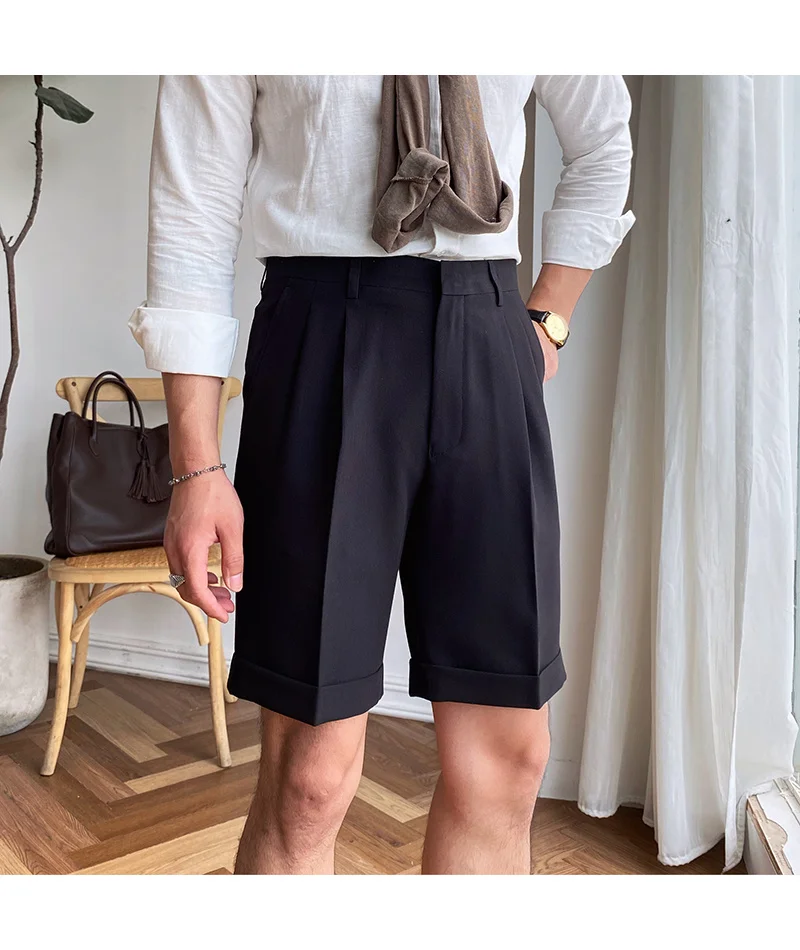 Summer Suits Shorts Men Solid Color Business Dress Pants Office Social Casual Slim Fit Pants Wedding Streetwear Trousers