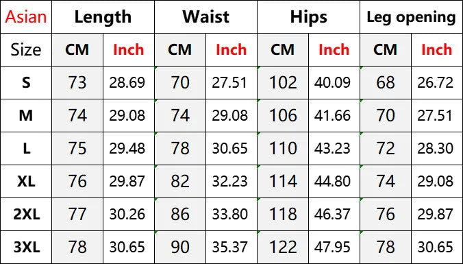 PANTS SIZE (Unit: CM)
