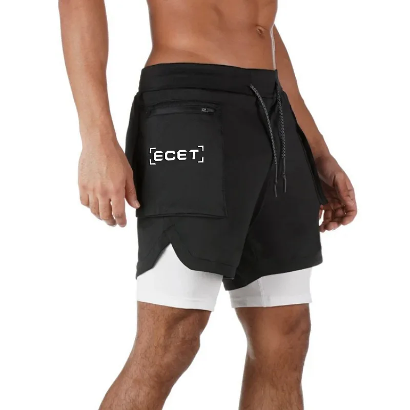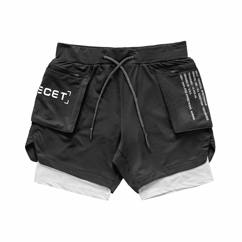 New Gym Running Shorts Men's Summer Sports Fitness Double-layer Quick-drying Breathable Brand Camouflage White Casual Short