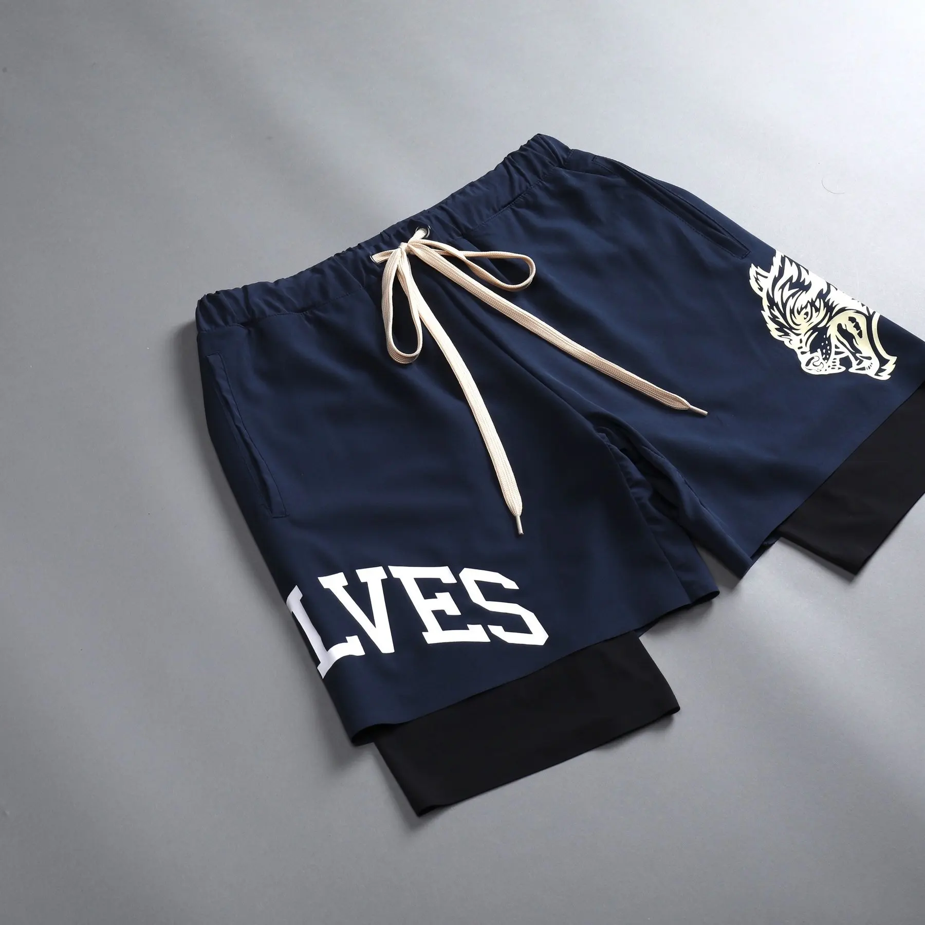 New Street Fashion Shorts Men's 2 in 1 Double Layer Cotton Casual Style Fitness Jogging Workout Men's Gym Black Sport Short