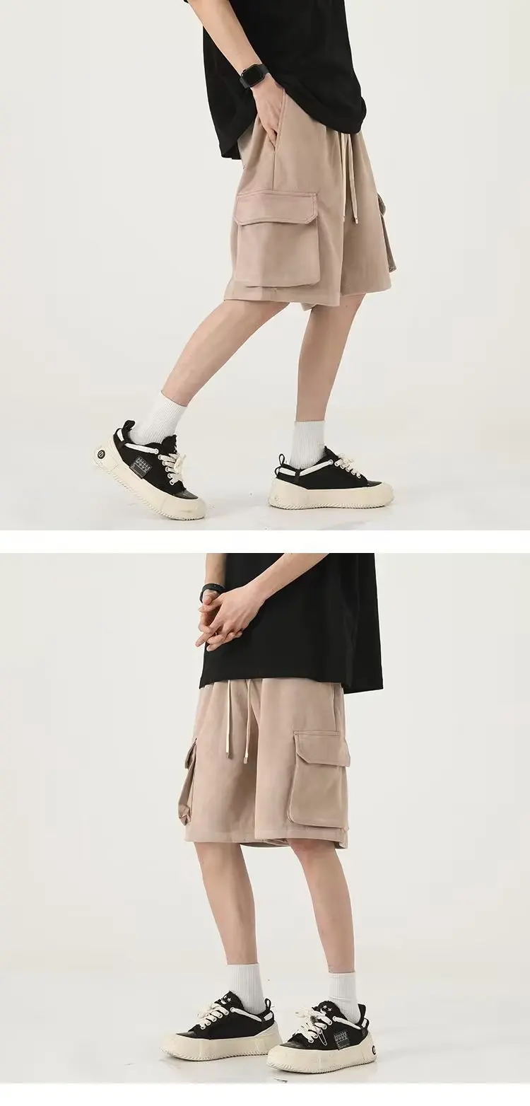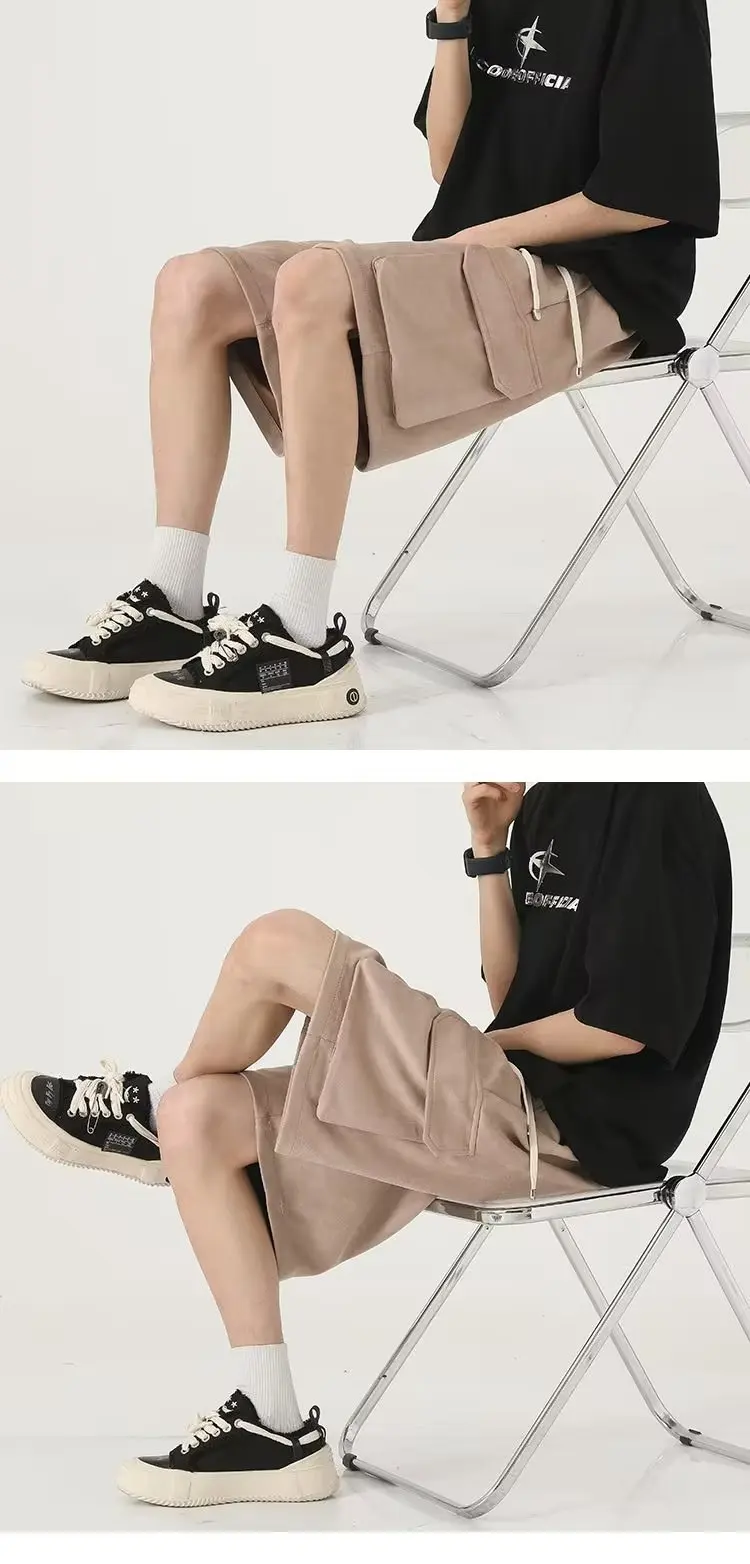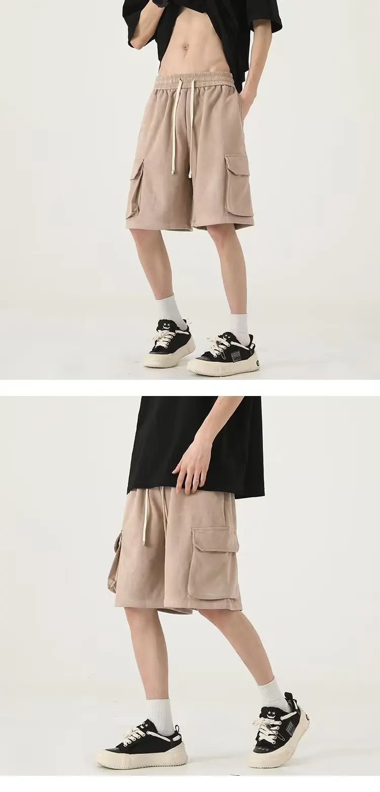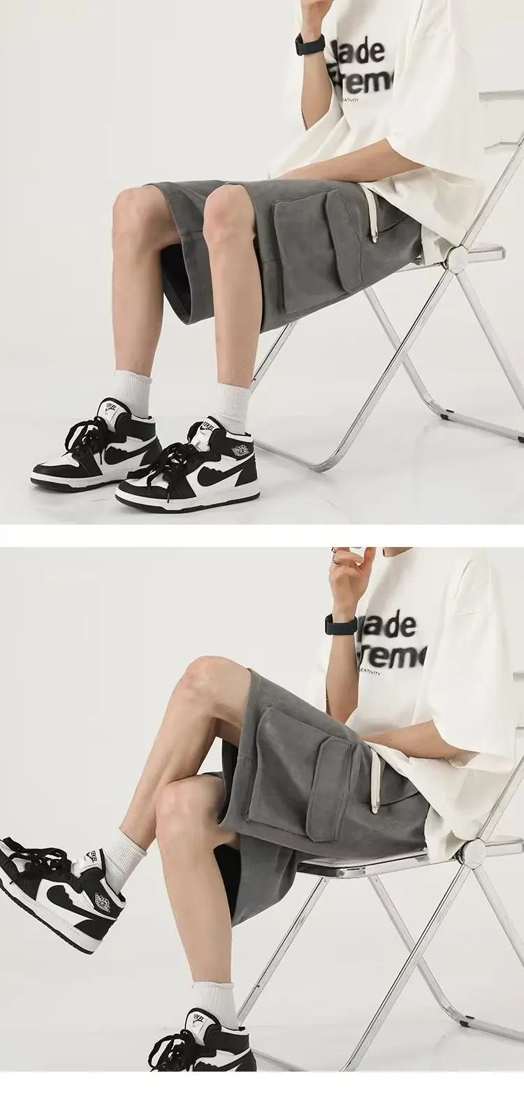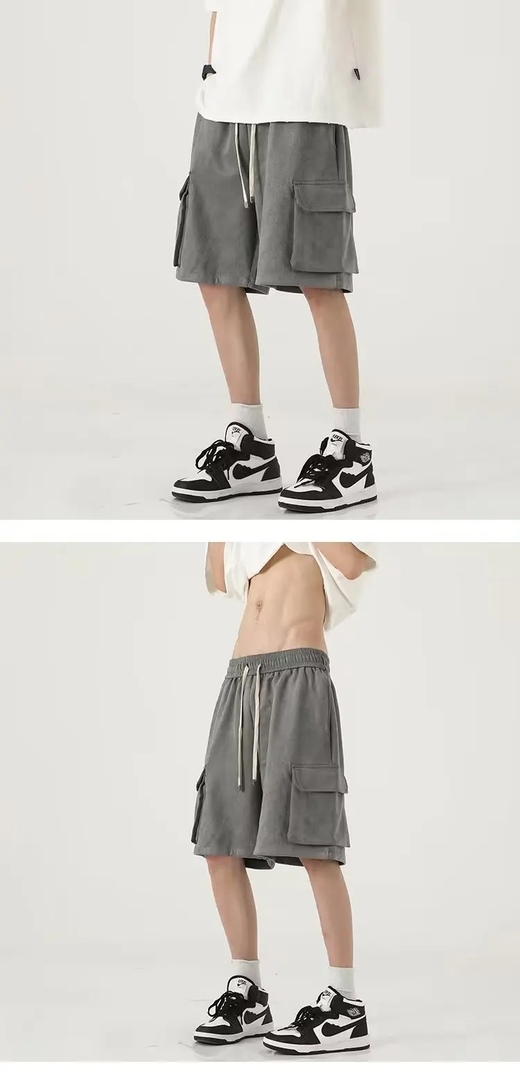 Summer Suede Shorts Men Fashion Retro Pocket Shorts Men Japanese Streetwear Hip-hop Loose Straight Pants Mens Cargo Pants M-3XL