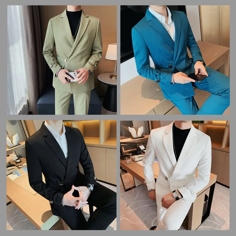Aidase 2 Pcs Set Wedding Suits for Men Solid Color Business Slim Fit Casual Social Dress Suits Blazer Pants Groom Tuxedos Costume Homme