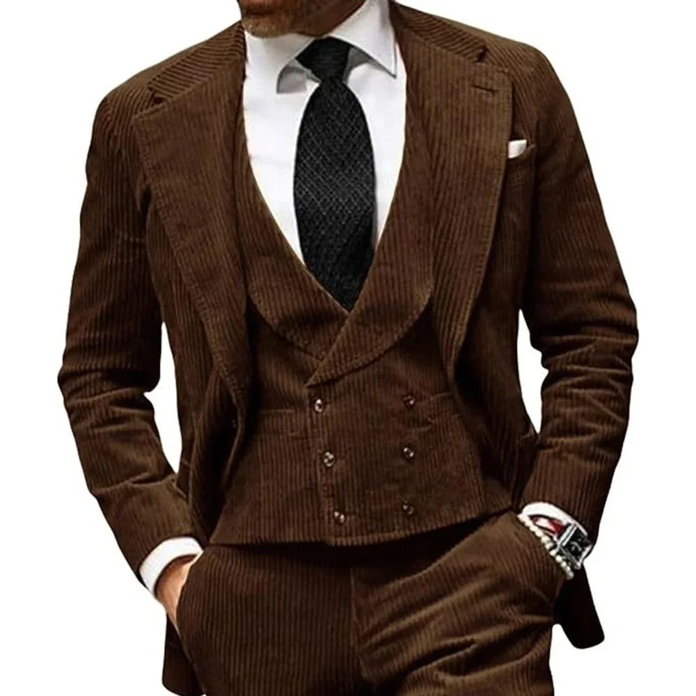 Aidase Autumn Winter Corduroy Suit For Men Single Breasted Peaked Lapel Business Casual Male Blazer Vest Pants 3Pcs Set Wedding costume