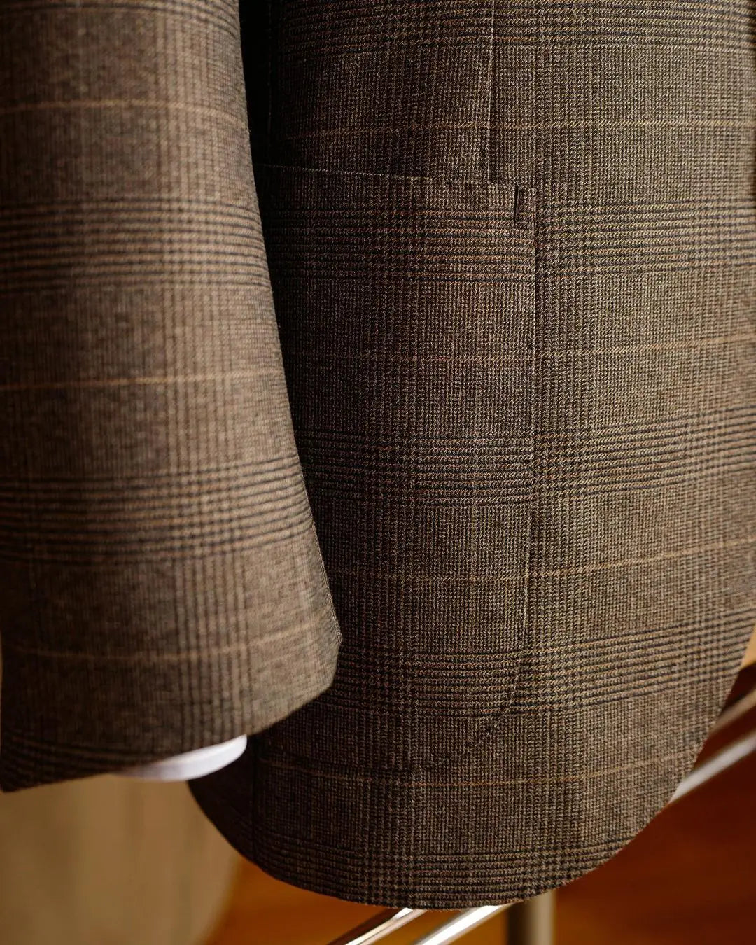 Brown Men Suit One Piece Business Blazer Single Breasted Plaid Stripes Wedding Groom Formal Work Wear Party Causal Tailored