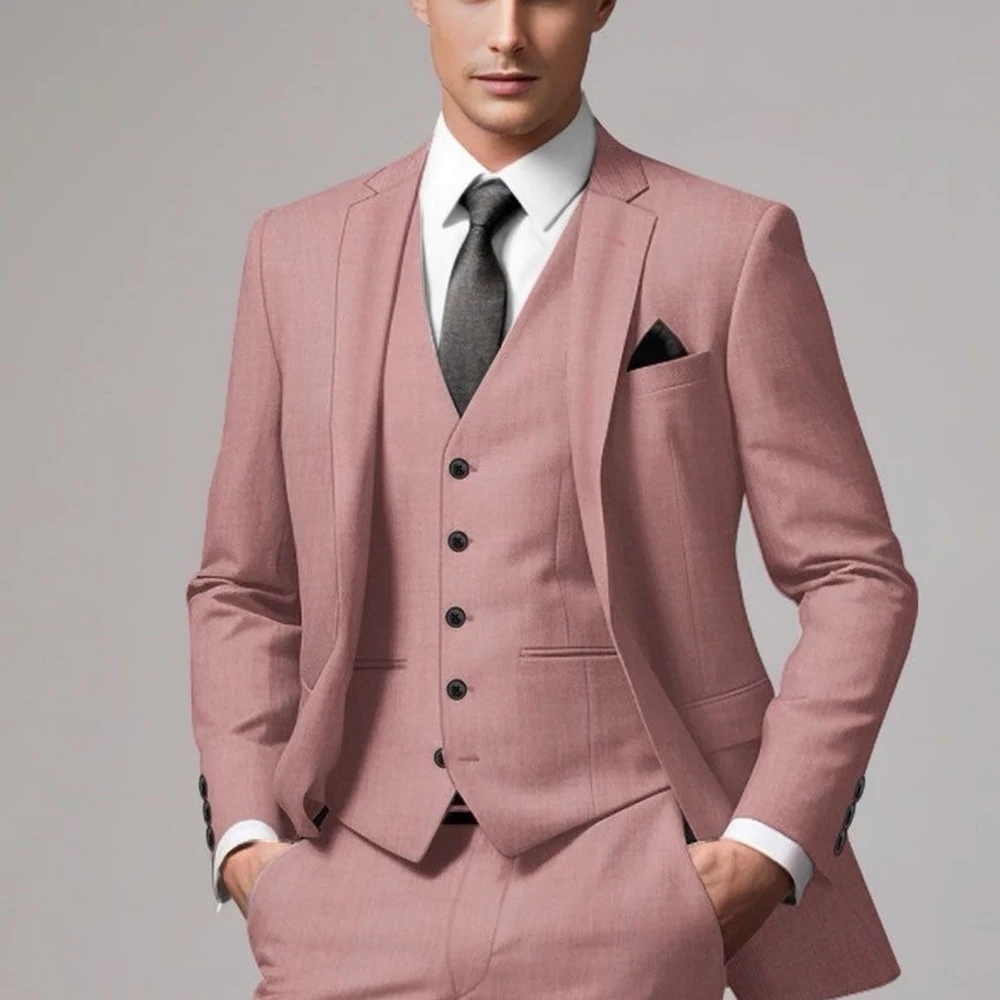Aidase Fashion Dusty Pink Men's Suits Eelgant Groom Male Clothing Formal Single Breasted Notch Lapel 3 Piece Jacket Pants Vest Blazer