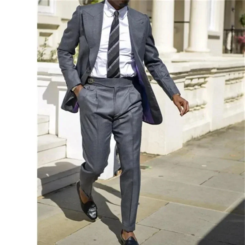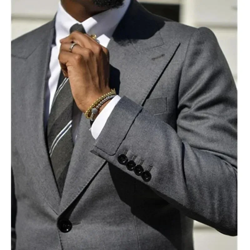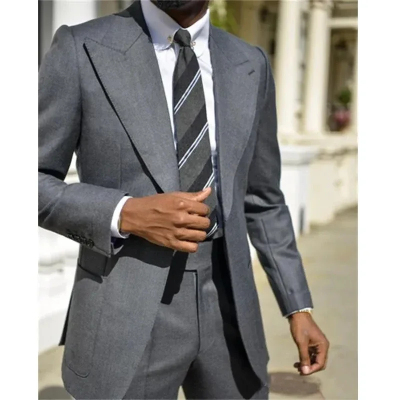 Aidase Formal Men's Suits Dark Grey Peak Lapel One Button Blazer Slim Fit Elegant Wedding 2 Piece Jacket Pants Costume Homme Blazer