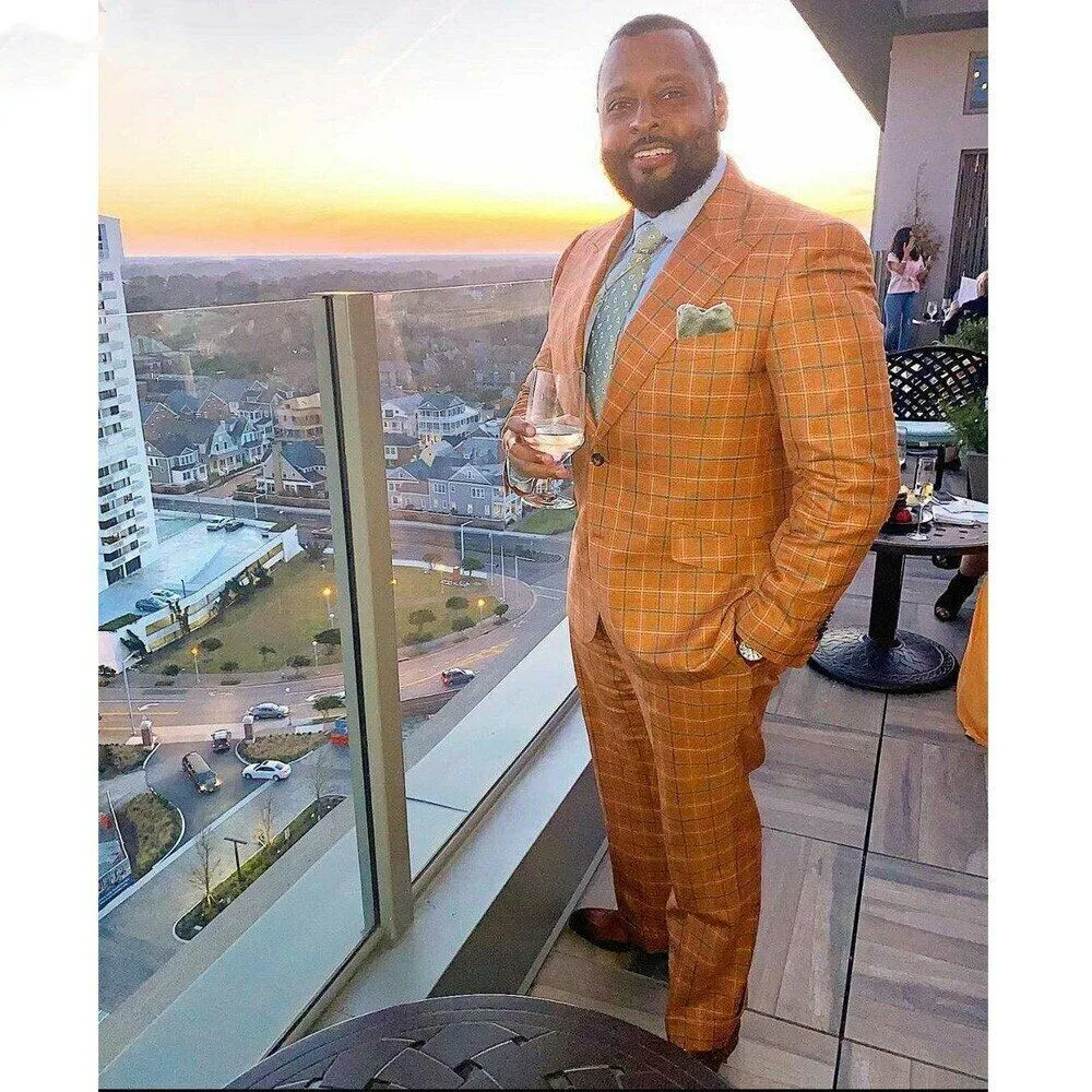 Gentle Orange Plaid Men Suit 2 Pieces Slim Fit Tailor-Made Blazer Pants Single Breasted Wedding Groom Work Wear Causal Tailored