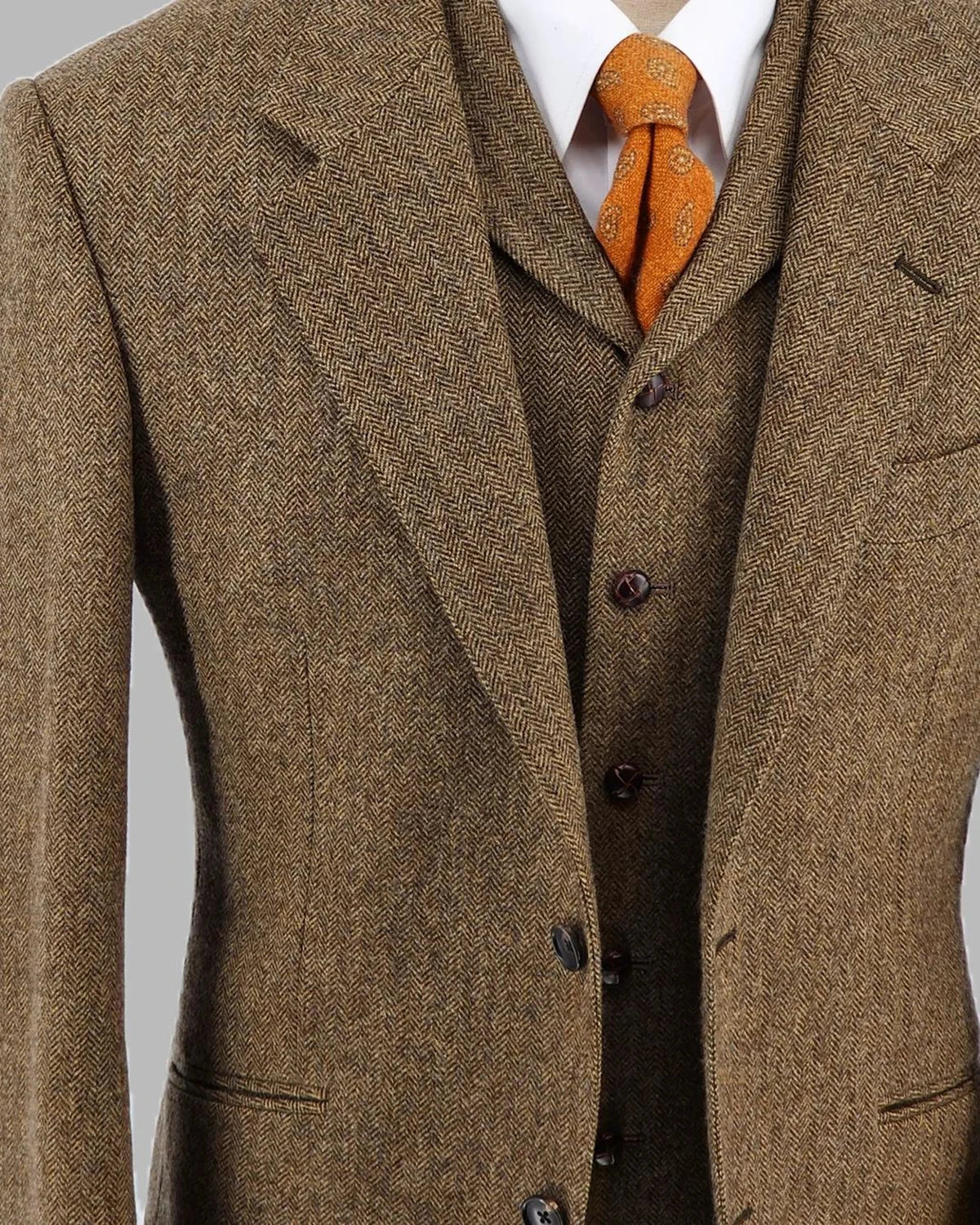Aidase Herringbone Men Suit Tailor-Made 3 Pieces Blazer Vest Pants Tuxedo Single Breasted Fashion Business Wedding Groom Prom Tailored