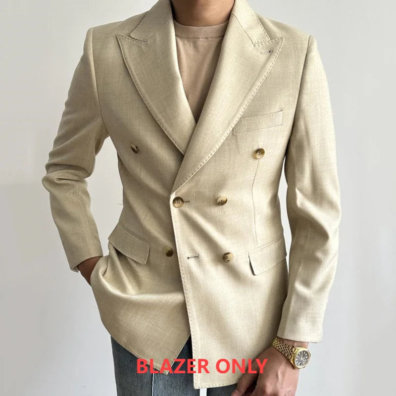 Italian Double Breasted Suit For Men Gentleman Business Blazer Hombre Luxury Retro Fall Long Sleeve Suit Dress Prom Blazers Men