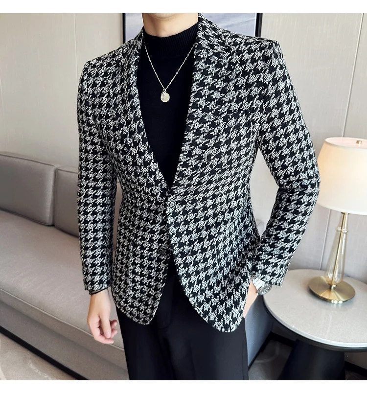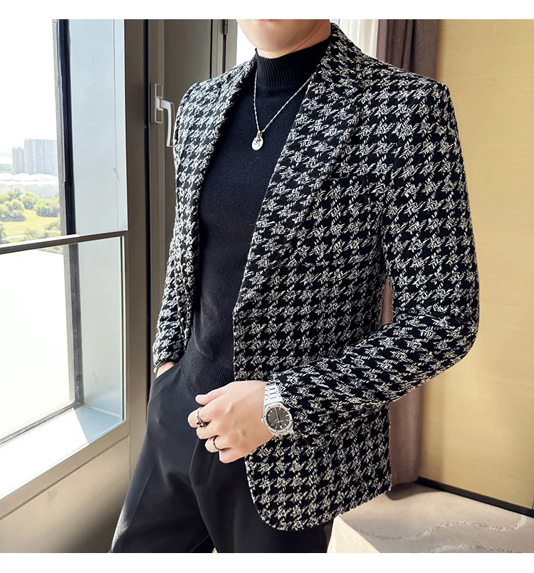 Aidase Men Blazer Autumn Winter Thick Plaid Suit Jackets/Slim Fit High Quality Tuxedo/Man Business Fashion Banquet Men Clothing